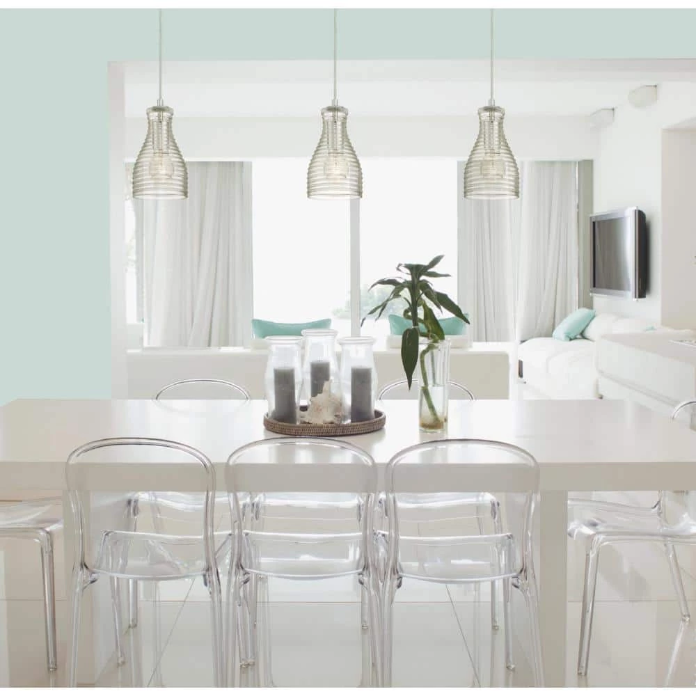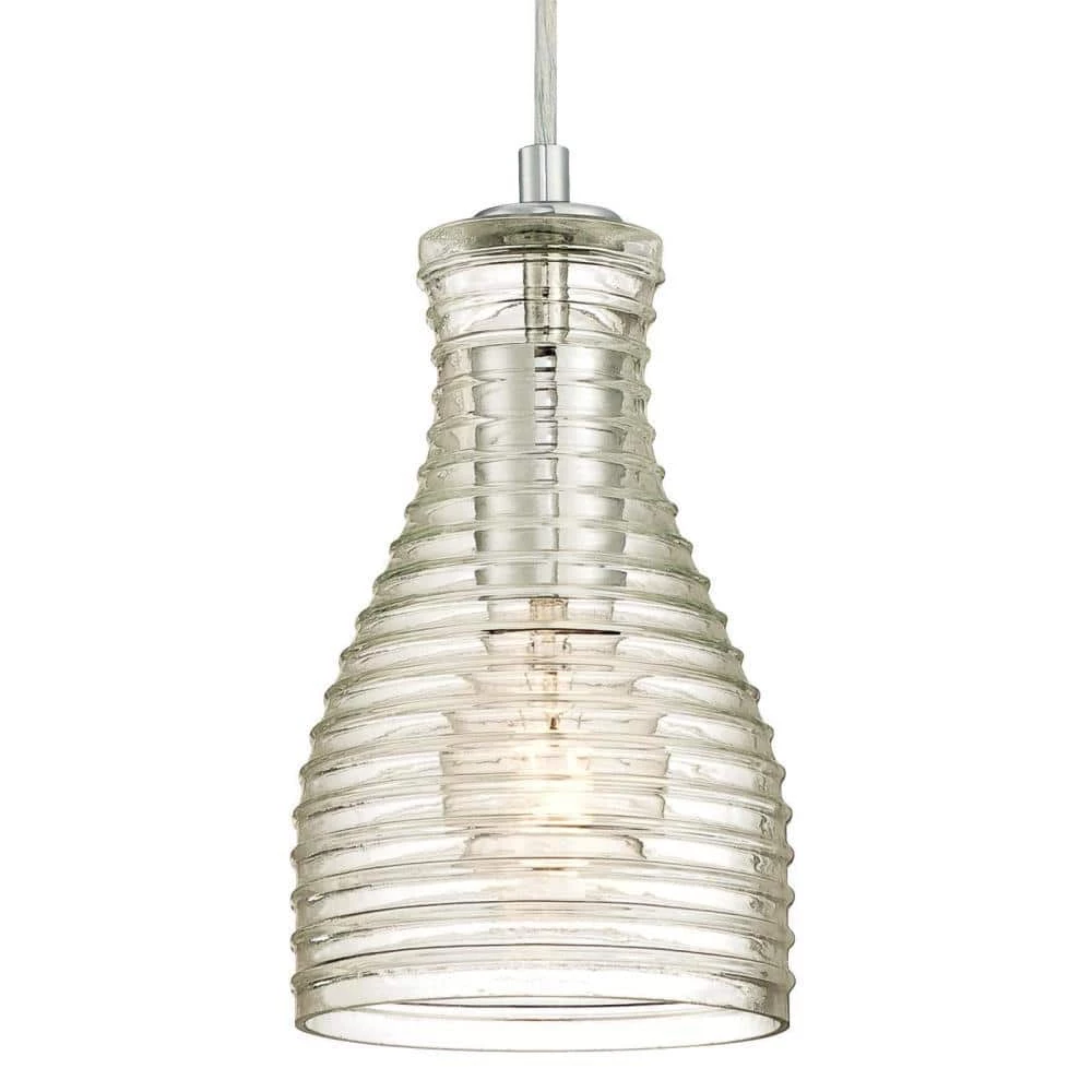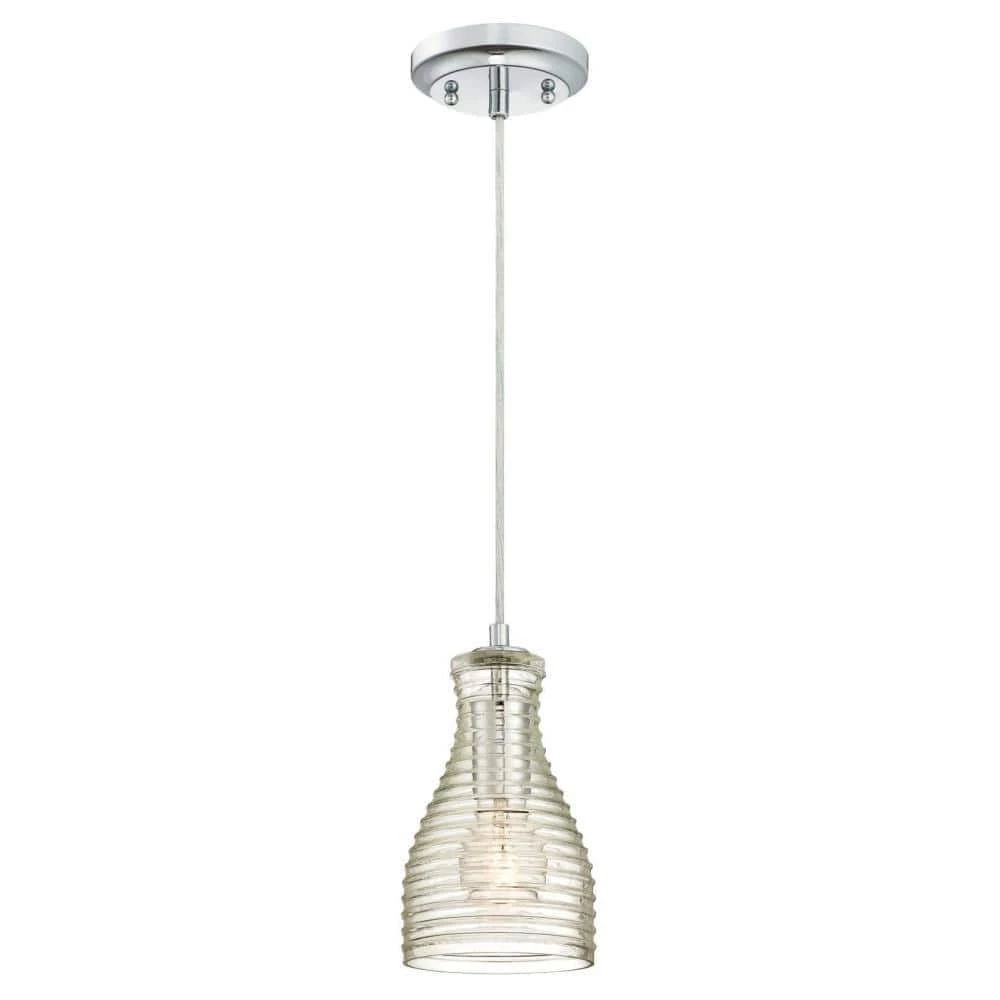Add a bright glow to your home with the Westinghouse Brushed Nickel 1-Light Mini Pendant. The brilliant chrome finish with hand blown clear rippled glass recaptures a vintage vibe. Whether hung by the bedside, in your entryway, over a small table, or tucked away in a reading nook, this pendant makes a unique impression. Complements beautifully with a range of styles, from farmhouse to vintage industrial. The pendant measures 60-9/16 in. x 5 in. (H x D), 50 inches adjustable cord length. Westinghouse is a trusted, global brand. Westinghouse knows lighting and offers products with exceptional quality, reliability and functionality. Product reference number 63292.