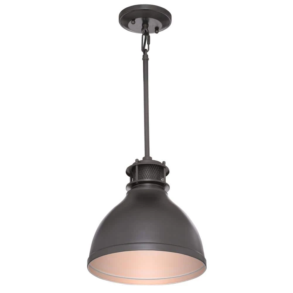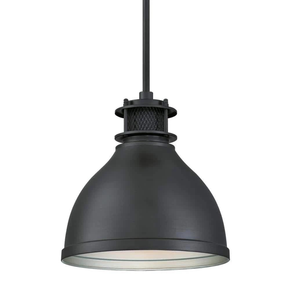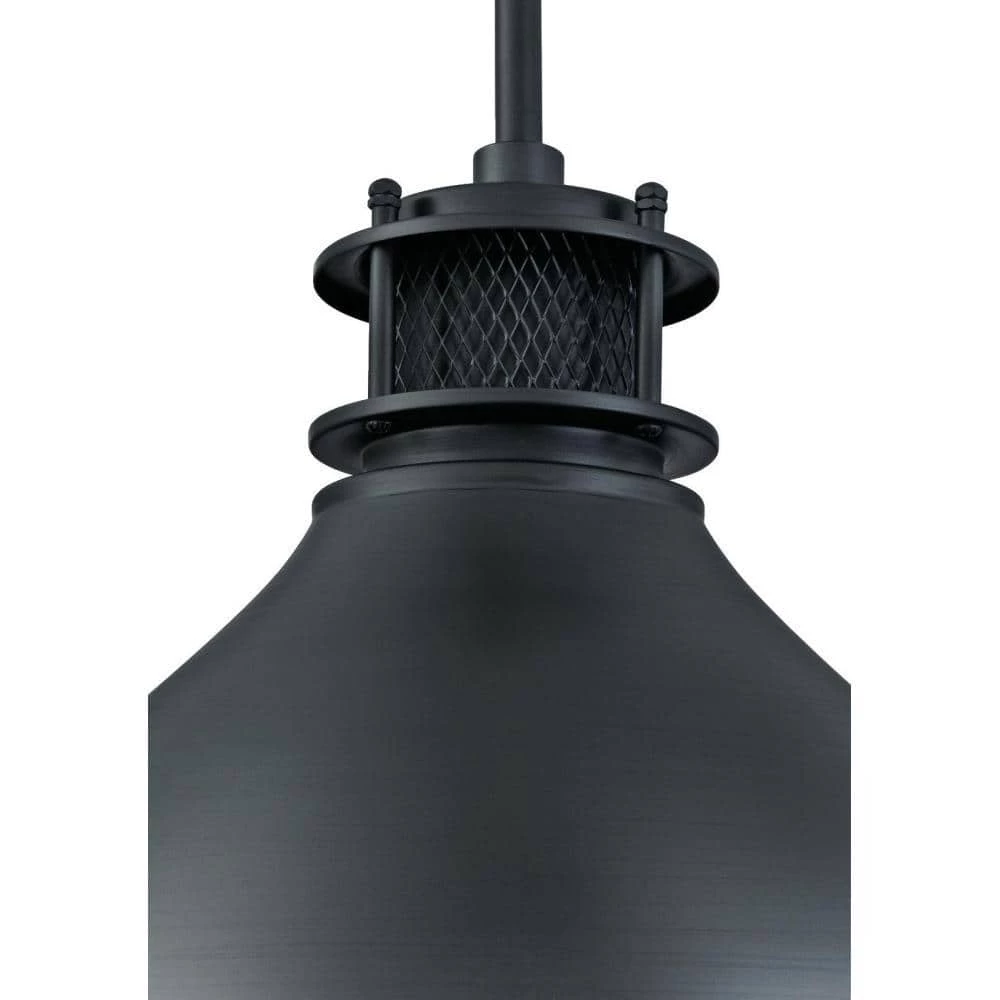 The Westinghouse Matte Brushed Gun Metal 1-Light Pendant adds richness and warmth to any space. The mesh accent around the top of the metal shade adds an industrial touch, this pendant will complement many architectural styles, from art deco, arts and crafts to shabby chic. Hang one pendant over a bedside table or in a cozy reading nook. Install multiples over a kitchen island, breakfast bar, or dining room table for stylish down lighting. The pendant measures 43-1/16 in. x 9-13/16 in. (H x D), install (1, 2 or 3) 9-1/2 in. rod to customize height. Westinghouse is a trusted, global brand. Westinghouse knows lighting and offers products with exceptional quality, reliability and functionality. Product reference number 63268.
