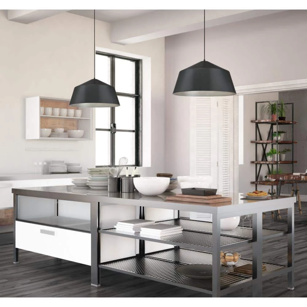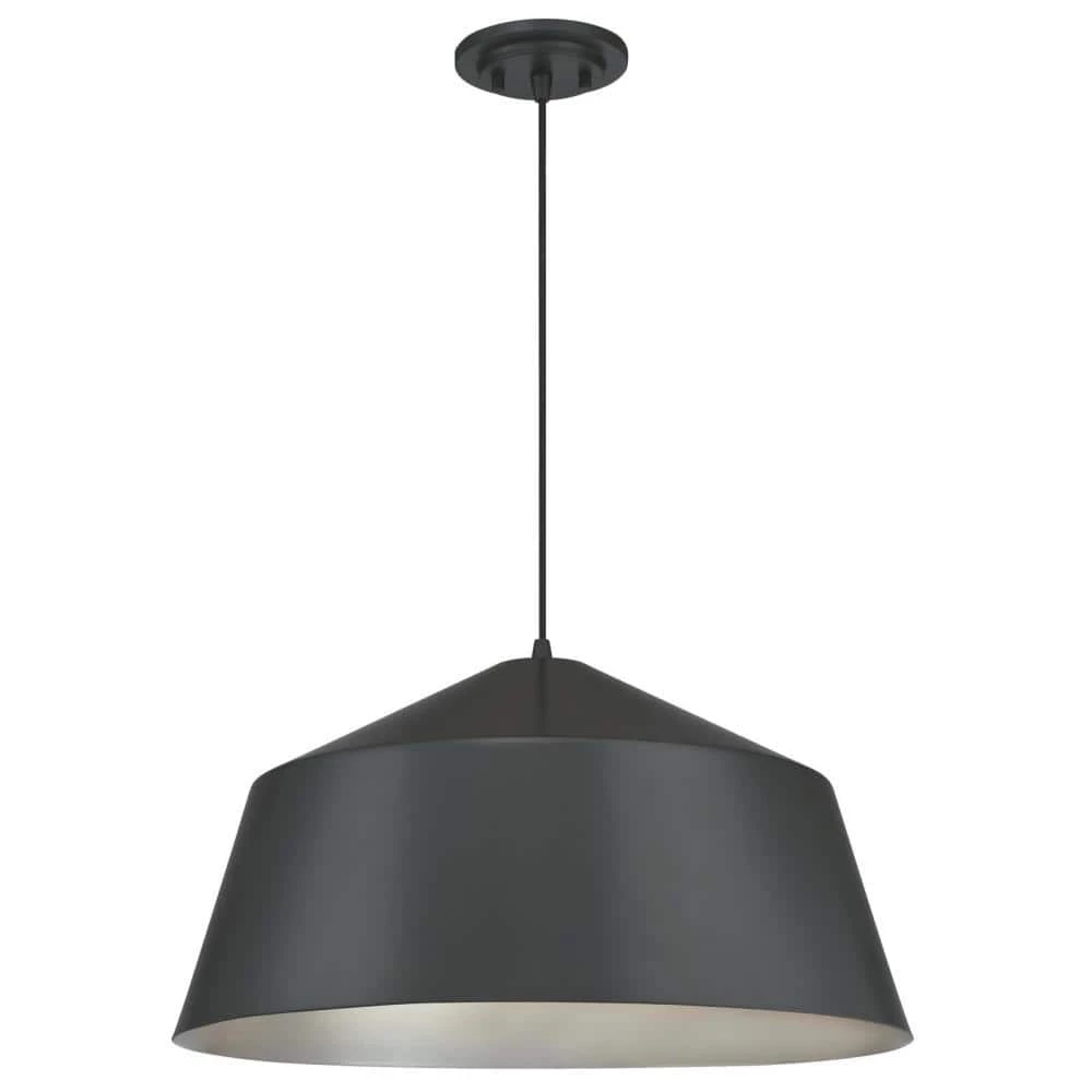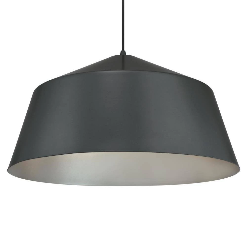 - Matte brushed gun metal finish pendant with silver interior adds vintage style to any room