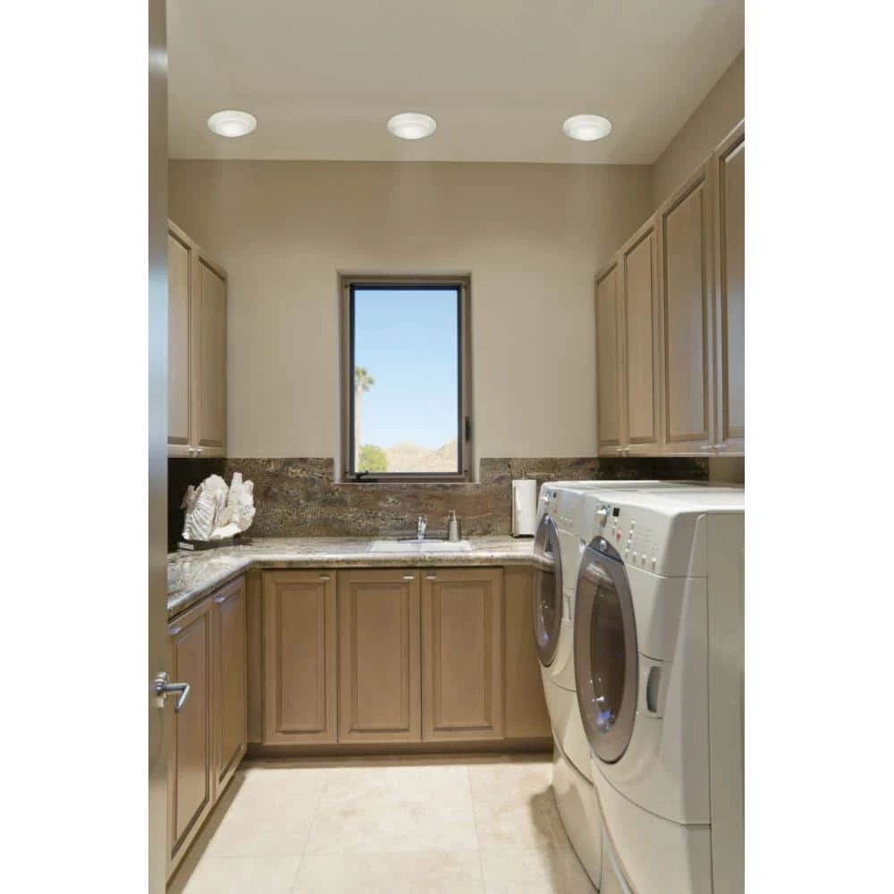 - Durable construction with impact-resistant lens is ideal for commercial or residential applications