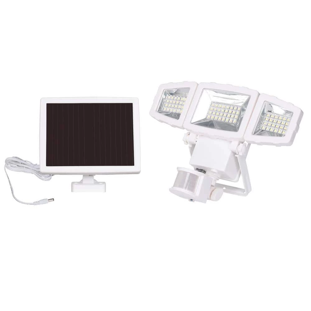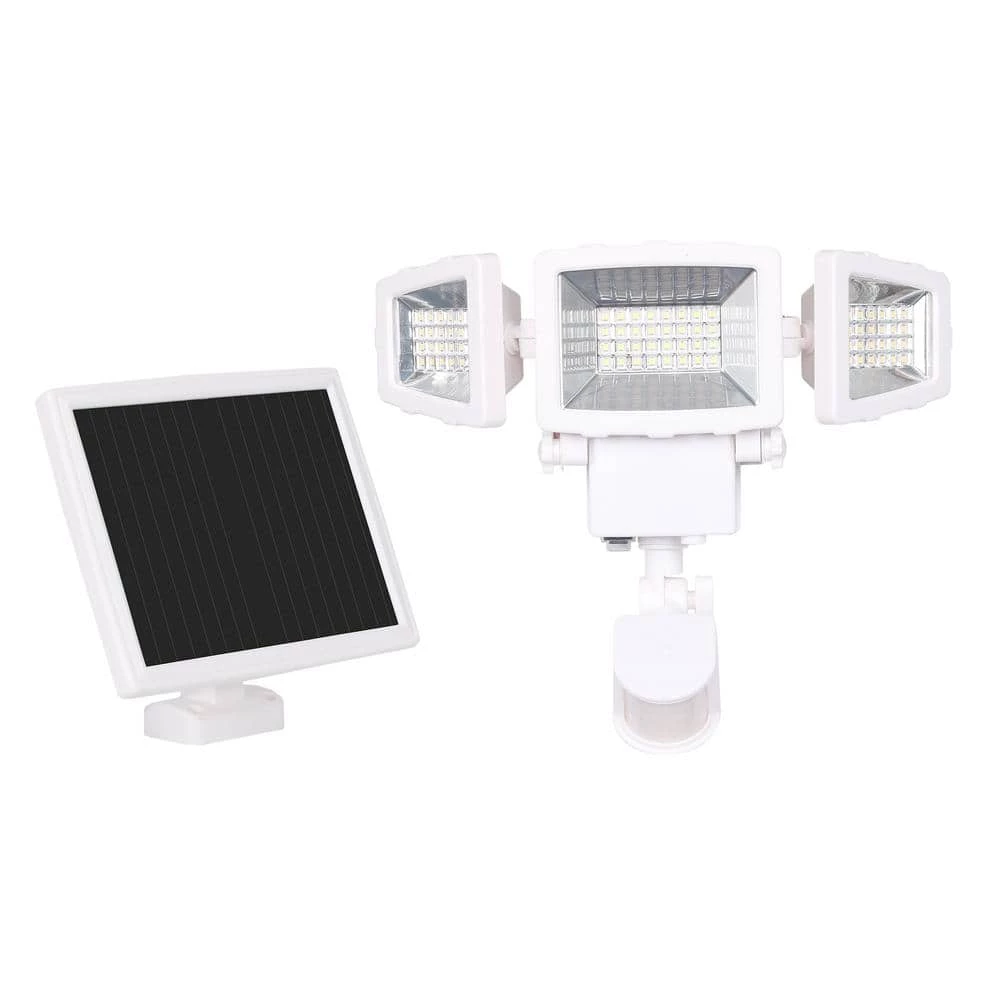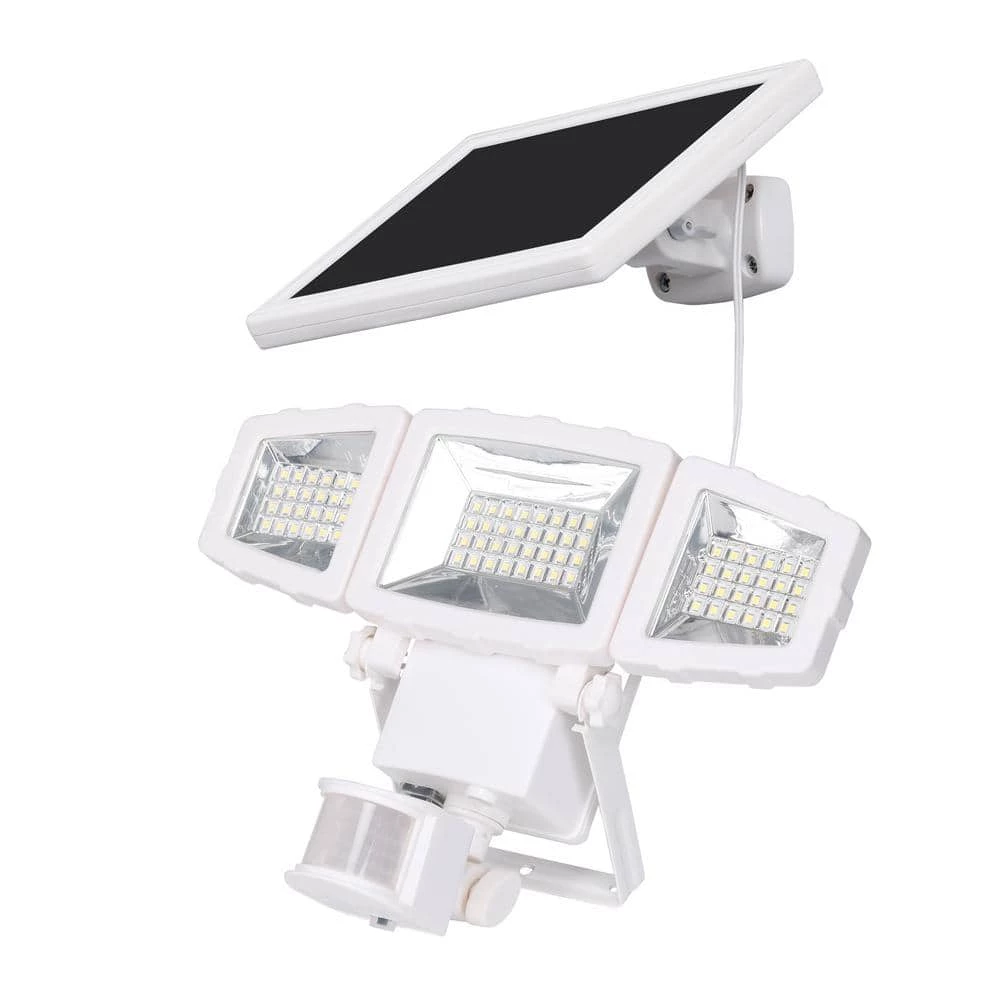 The Westinghouse 2000 Lumens Triple Head Solar Security Light will add bright security lighting anywhere its needed for your home or business. No electrical wiring needed makes this the perfect choice for garages, sheds, or any location not supplied with power. This light features a passive infrared sensor (PIR) that detects motion, an on/off switch and a timer with 3 different time settings. Once motion is detected 80 High Intensity LEDs will turn on, giving you 2000 Lumens of light. This best quality solar light provides safety and security you and your family can count on all year long.