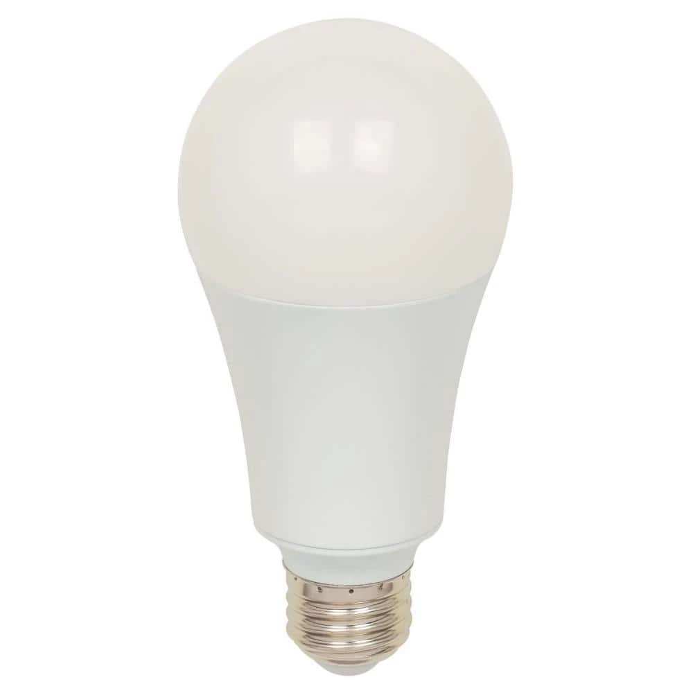 This non-dimmable Omni A21 LED is perfect for use in commercial lighting applications where the bulb is visible. Featuring a 2550 lumen output, this high lumen LED bulb is perfect for use in commercial, hospitality and any application that requires large amounts of light such as barn lights or decorative outdoor fixtures. The omni-directional LED allows light to go in all directions, providing attractive, even illumination in fixtures that require very bright light sources. Reduce energy costs and save up to 83% over the lifetime of this Westinghouse LED. Using only 25 watts of energy, it produces the same light output as a 150 watt incandescent bulb. Operates on a voltage range of 120 to 277 volts. Replaces high lumen 277 volt bulbs that operate on 277 volt building mains voltage without a transformer or ballast. Make the switch to LED light bulbs from Westinghouse, a trusted, global brand. Westinghouse knows lighting and offers products with exceptional quality, reliability and functionality. Product reference number 51590.