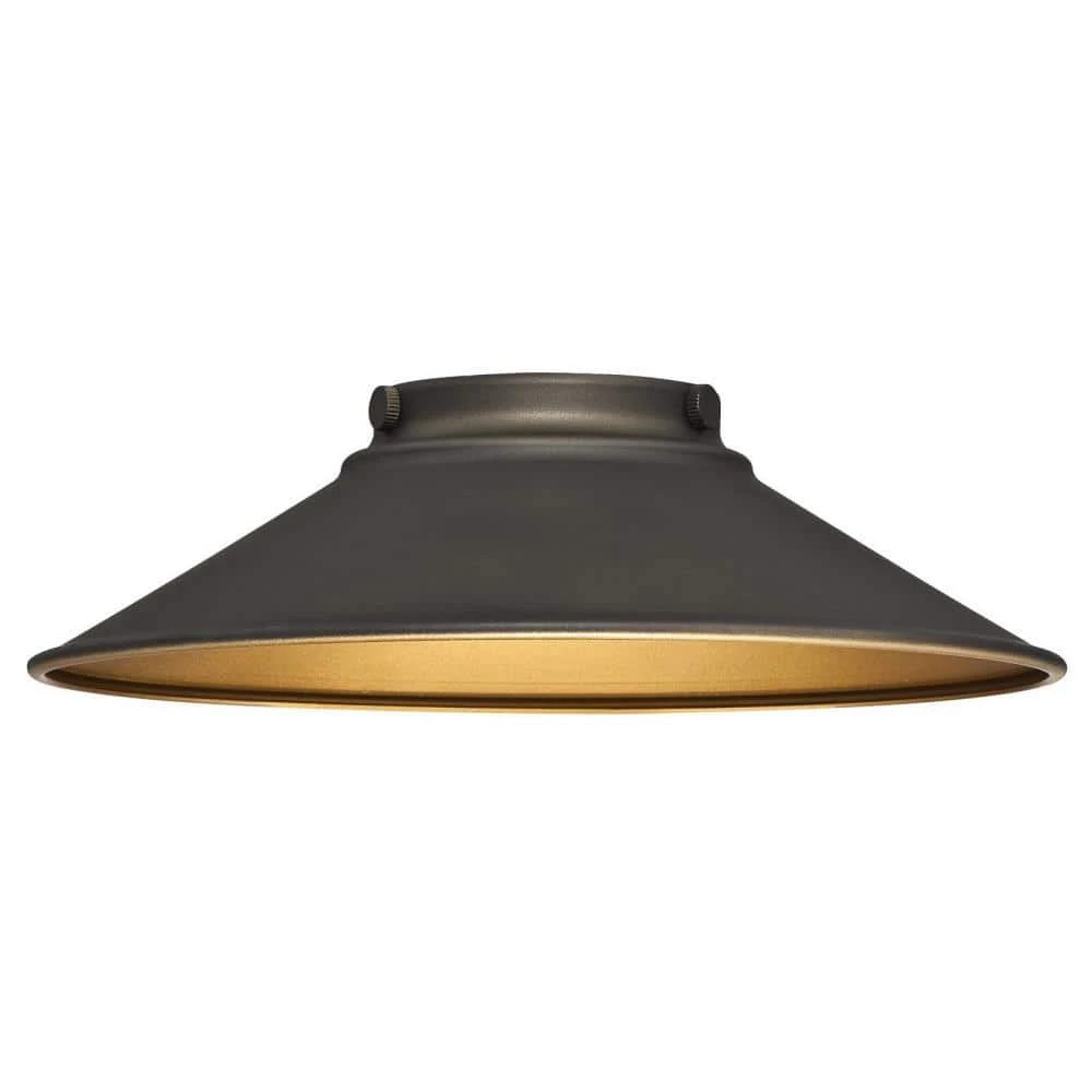 - Oil rubbed bronze shade with contrasting metallic bronze interior