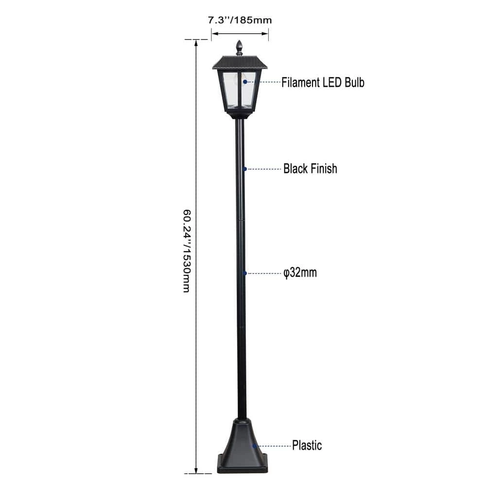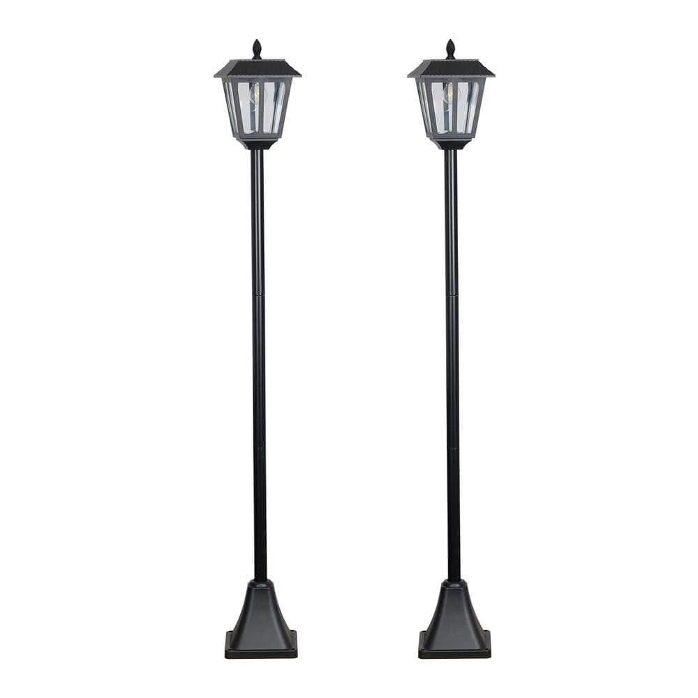 This Two-Light Outdoor LED Solar Post Lamp adds a modern touch to your home. It features a vintage design with warm white light and a black-finished solar post that is perfect for illuminating porches, yards, walkways, garages and more. This fixture has filament bulbs and two lighting modes, low and high, to fit your needs.