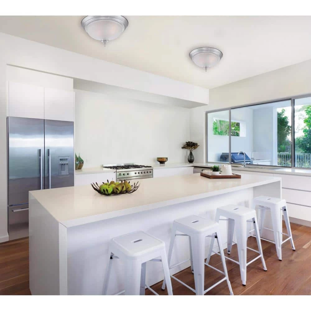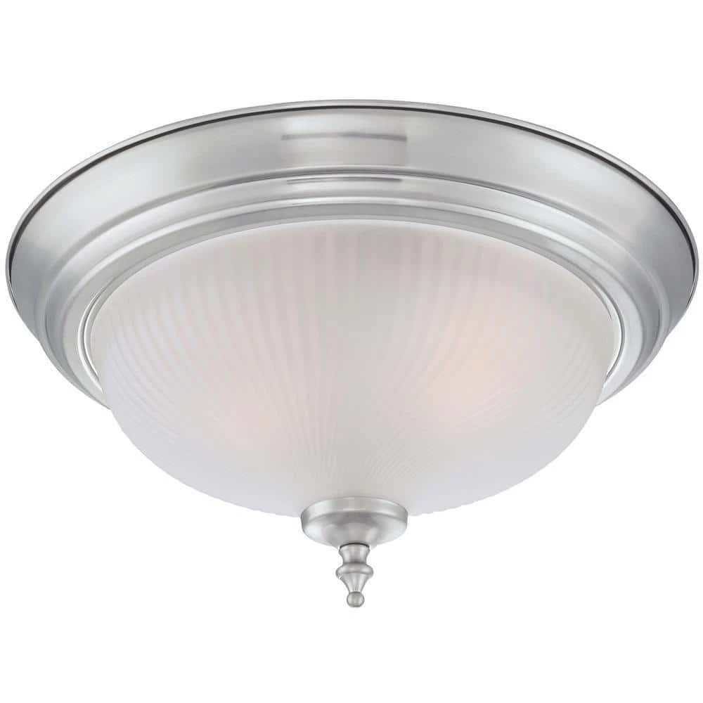 With a brushed nickel finish and elegant traditional design, this Westinghouse 2-Light Ceiling Fixture adds a tasteful touch to any room. The frosted swirl glass creates inviting ambient light and blends beautifully with any decor. Perfect for an entryway, dining room, bedroom, or hallways, installs this fixture on low or high ceilings. No matter where you place it, you will enjoy the inviting air of this light. The fixture is 6-5/8 in. x 13 in. (H x D) and comes in a convenient 2-pack box. This Westinghouse indoor ceiling fixture is ETL/CETL listed for safety. It is backed by a 5-year manufacturer’s warranty against defects in materials and workmanship. Westinghouse is a global brand with a simple philosophy: make life easier for everyone who buys its products. Westinghouse products are designed for exceptional quality, reliability, and functionality. Product reference number 63444.