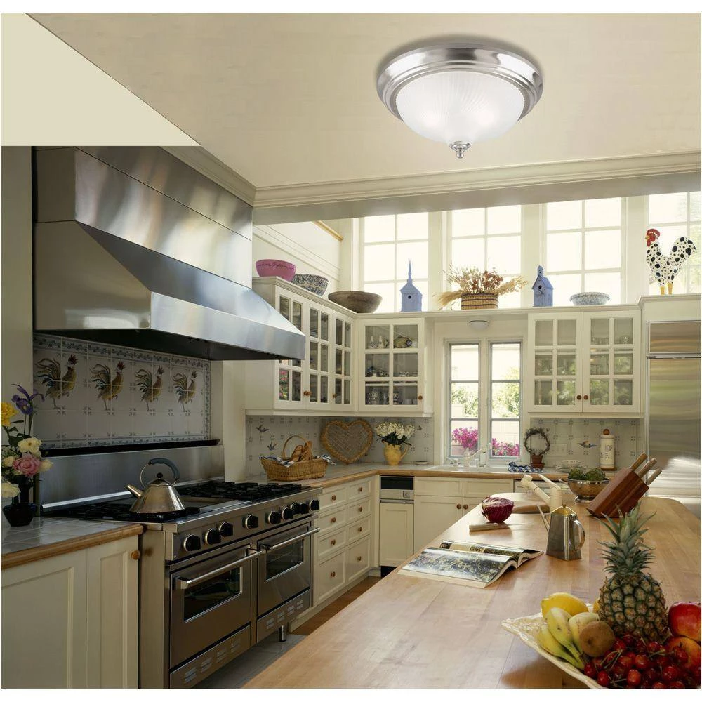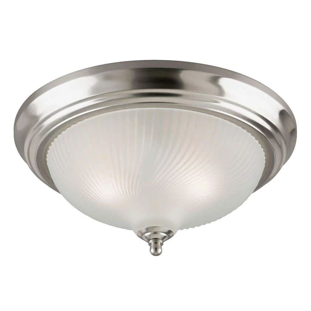 With a brushed nickel finish and frosted swirl glass, this Westinghouse 2-light flush-mount interior ceiling fixture adds a tasteful touch to any decor. The smooth base and rounded finial set off the frosted glass. The fixture mounts flush, allowing it to work well with low and height ceilings alike. No matter where you place it, you will enjoy the sleek look of this fixture. The fixture’s intermediate dimensions make it ideal for rooms of all sizes. The fixture is 6-1/8 in. height x 13 in. in diameter. It uses 2 medium-base light bulbs, 60-Watt maximum (not included). This Westinghouse interior fixture is UL listed for safety. It is backed by a 5-year manufacturer’s warranty against defects in materials and workmanship.