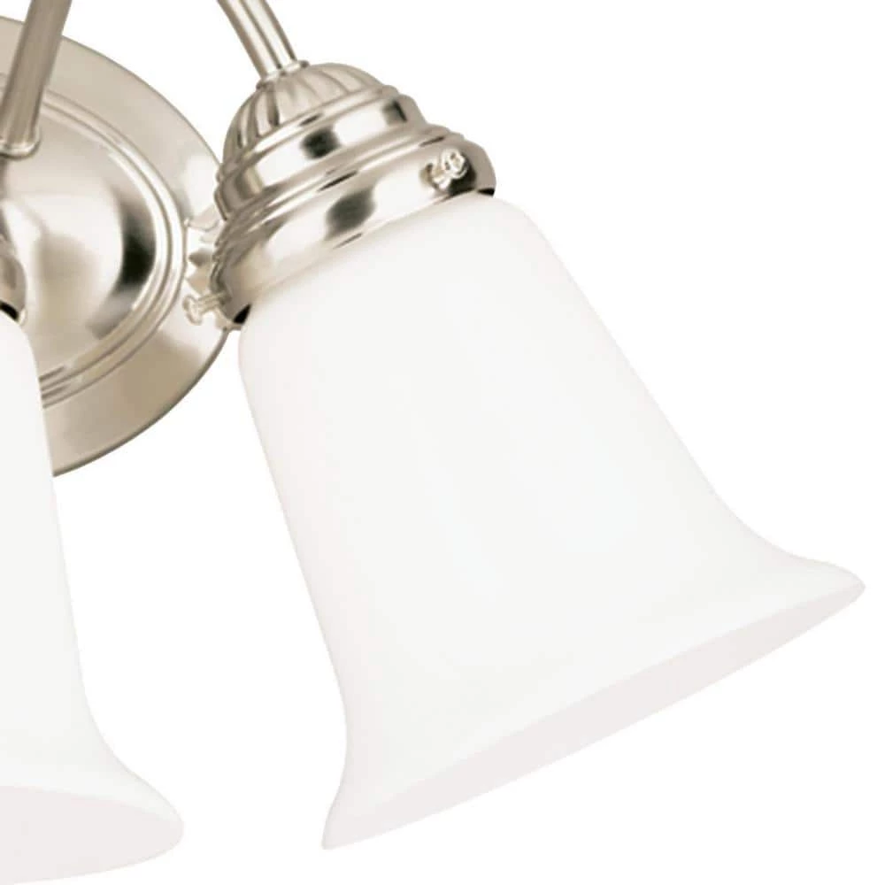 - Brushed nickel finish; white opal glass