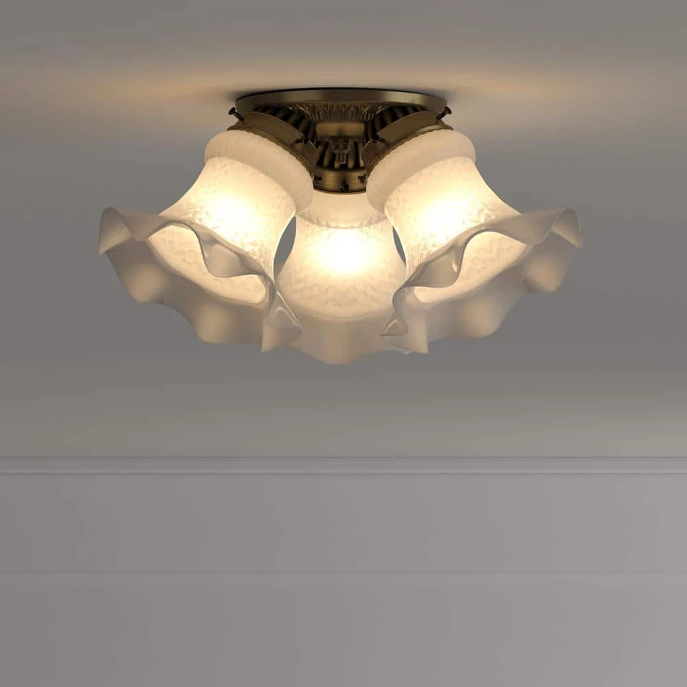 - Frosted ruffled edge glass shades diffuse light evenly and adds classic style to any room