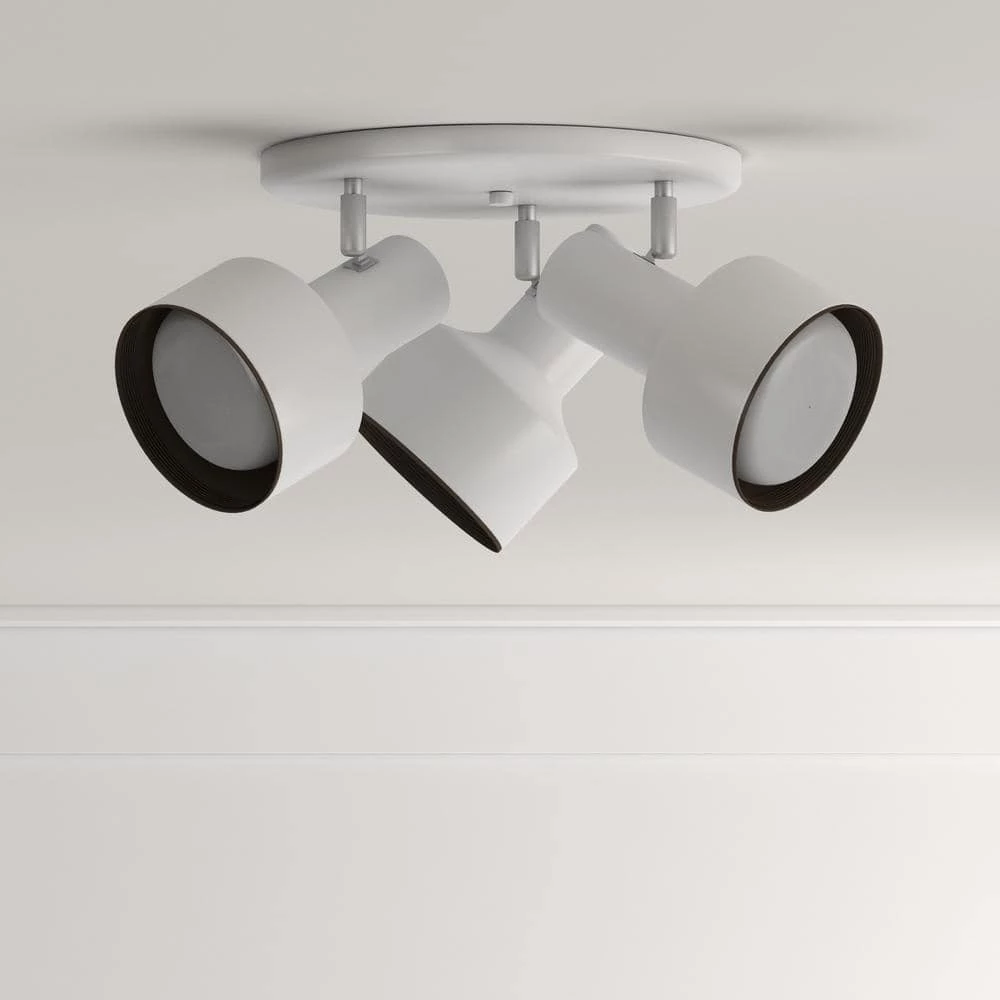 This Westinghouse 3-light multi-directional flush-mount interior ceiling fixture has a nice, minimal style and gives you total control over your illumination. The crisp off-white finish is compatible with almost any surrounding. The fixture features 3 independent, multi-directional spot lights, enabling you to focus light on a dim nook or corner. Its flush-mount design makes it all the more adaptable, since it works well with ceilings high and low. No matter where you place it, you will appreciate the versatility of this fixture. The light fixture is 8-1/4 in. x 10-1/8 in. (H x W). It uses 3 medium-base light bulbs, 65-watt maximum (not included). This Westinghouse interior light fixture is UL listed for safety. It is p. Product reference number 66326.