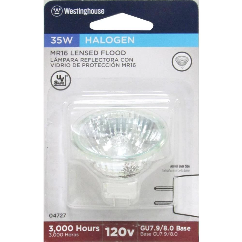 Brighten your home for less with the Westinghouse 35-watt Halogen MR16 GU7.9/8.0 Base Flood Light Bulb. It’s ideal for pendant and recessed lighting fixtures. This dimmable, clear lens bulb is a cost-effective, low-energy option for your home, office or outside use.