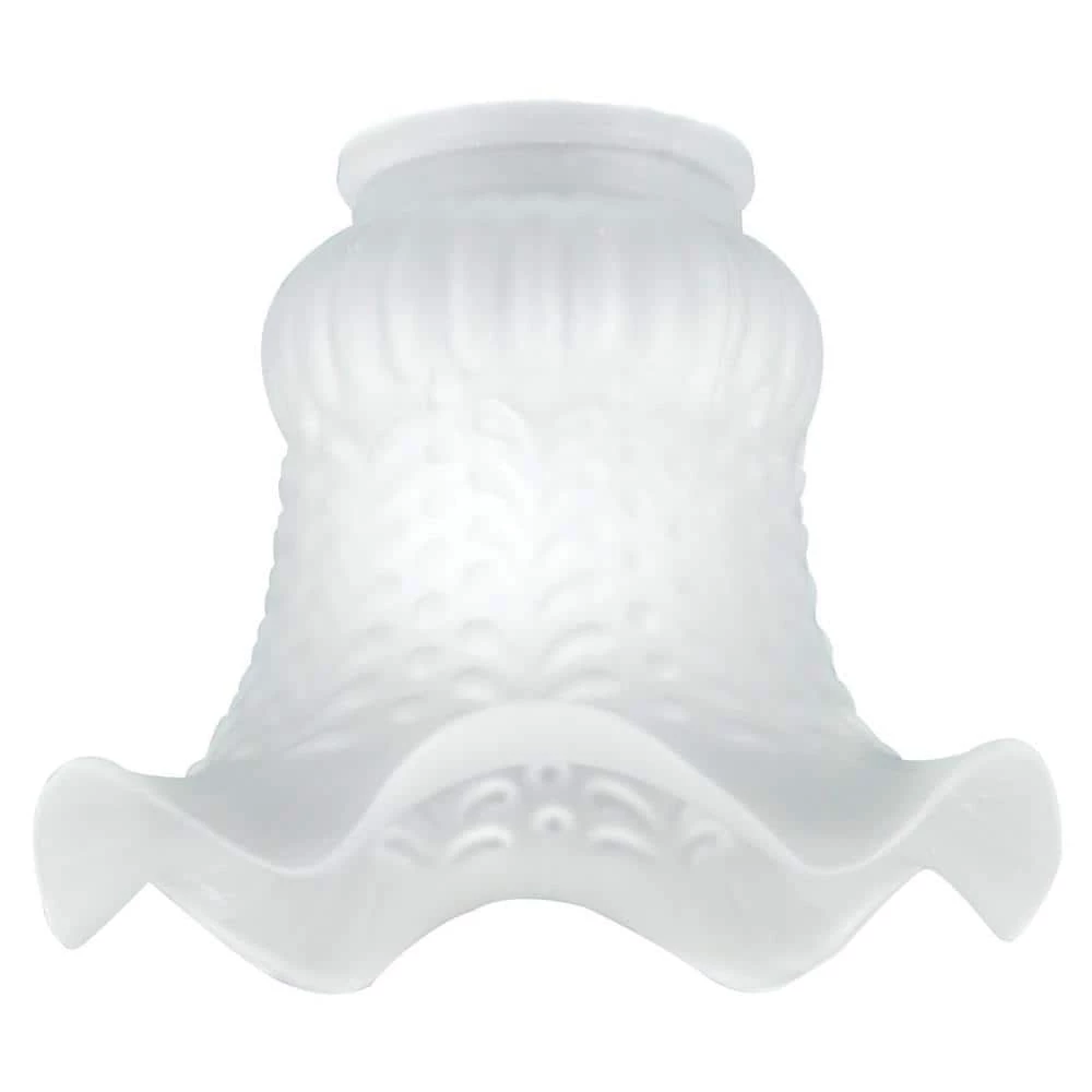 This Westinghouse Lighting 4-1/8 in. x 5 in. Satin Accessory Shade features satin glass and bubble texturing with a ruffled crimp edge for a flowery appearance. Westinghouse’s customizable products inspire creativity for quick and easy home upgrades. Choose your shade, select your fixture and finish, and enjoy your new custom lighting. Because it features a standard 2-1/4 in. fitter, this shade will work with a variety of lighting configurations-from mini-pendants to wall fixtures. Install this shade in your bathroom, kitchen, hallway, or bedroom. Wherever you place it, you will enjoy the shade’s detailed design. The shade is 4-1/8 in. high x 5 in. in diameter. The handcrafted nature of glassware produces minor differences in design and sizing. Subtle variations will occur from piece to piece, adding to each one’s unique qualities. Measurements may vary slightly.