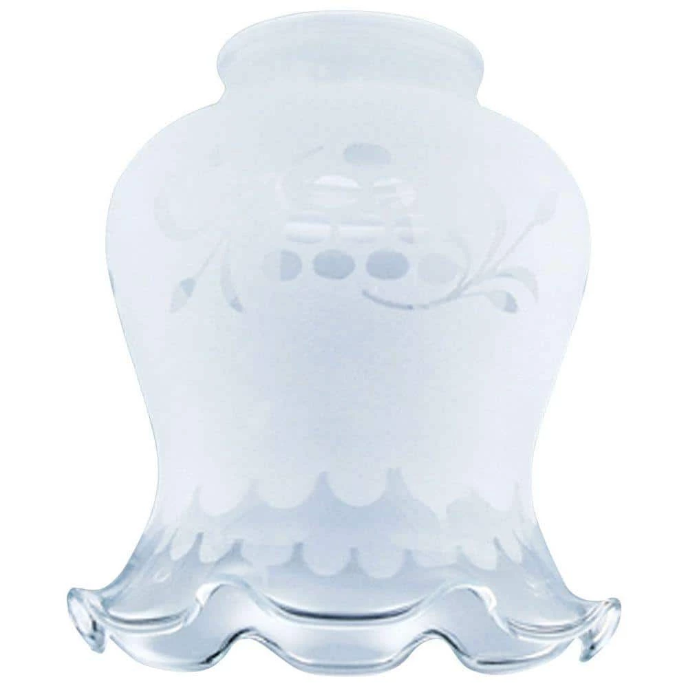 Add antique elegance to your environment with this Westinghouse Lighting 4-1/8 in. x 5 in. Frosted Etched Grape Design Crimp Accessory Shade. It features a vase-like shape, a subtle grape design pattern etched onto frosted glass, and a clear glass crimped edge. Westinghouse’s customizable products inspire creativity for quick and easy home upgrades. Choose your shade, select your fixture and finish, and enjoy your new custom lighting. Because it features a standard 2-1/4 in. fitter, this shade will work with a variety of lighting configurations–from mini pendants to wall fixtures. Install this shade in your bathroom, kitchen, or hallway. Wherever you place it, you will enjoy the shade’s detailed, antique design. The shade is 4-1/8 in. high x 5 in. in diameter. The handcrafted nature of glassware produces minor differences in design and sizing. Subtle variations will occur from piece to piece, adding to each one’s unique qualities. Measurements may vary slightly.