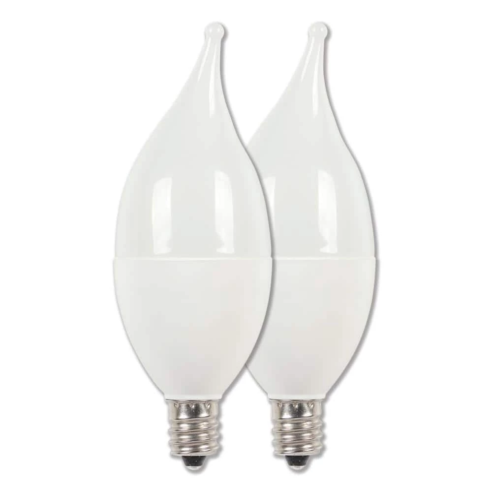 - Soft white finish, candelabra base, non-dimmable, 2-pack