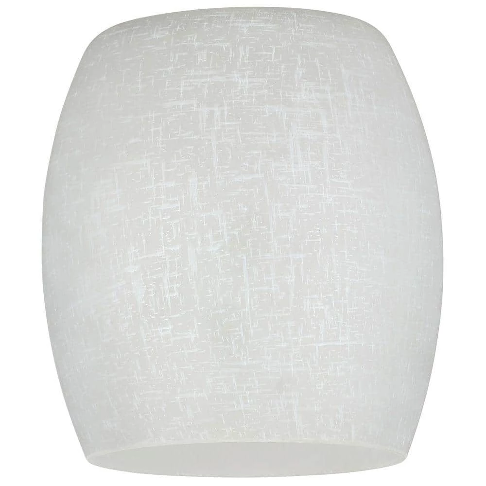 This Westinghouse 5-5/16 in. Hand-Blown White Linen Barrel Shade with 2-1/4 in. neckless fitter and 4-15/16 in. Dia adds texture to your decor with a pattern of fabric fibers on the smooth barrel shape. Westinghouse’s customizable products inspire creativity for quick and easy home upgrades. Choose your shade, select your fixture and finish, and enjoy your new custom lighting. Because it features a standard 2-1/4 in. neckless fitter, this shade will work with a variety of lighting fixtures–from mini-pendants to wall fixtures. Install this shade in your bathroom, kitchen, hallway, or bedroom. Wherever you place it, you will enjoy the shade’s textured design. The shade is 5-5/16 in. in height x 4-15/16 in. in diameter and 2-1/4 neckless fitter. The handcrafted nature of glassware produces minor differences in design and sizing. Subtle variations will occur from piece to piece, adding to each one’s unique qualities. Measurements may vary slightly. Westinghouse is a global brand with a simple philosophy: make life easier for everyone who buys its products. Westinghouse products are designed for exceptional quality, reliability, and functionality. Product reference number 81003.