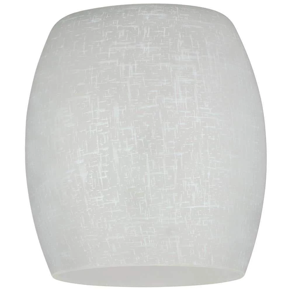 This Westinghouse 5-5/16 in. Handblown White Linen Barrel Shade with 2-1/4 in. neckless fitter and 4-15/16 in. Dia adds texture to your decor with a pattern of fabric fibers on the smooth barrel shape. Westinghouse’s customizable products inspire creativity for quick and easy home upgrades. Choose your shade, select your fixture and finish, and enjoy your new custom lighting. Because it features a standard 2-1/4 in. neckless fitter, this shade will work with a variety of lighting fixtures from mini-pendants to wall fixtures. Install this shade in your bathroom, kitchen, hallway, or bedroom. Wherever you place it, you will enjoy the shade’s textured design. The shade is 5-5/16 in. in height x 4-15/16 in. in Dia and 2-1/4 neckless fitter. The handcrafted nature of glassware produces minor differences in design and sizing. Subtle variations will occur from piece to piece, adding to each one’s unique qualities. Measurements may vary slightly. Westinghouse is a global brand with a simple philosophy: make life easier for everyone who buys its products. Westinghouse products are designed for exceptional quality, reliability, and functionality. Product reference number 81003.