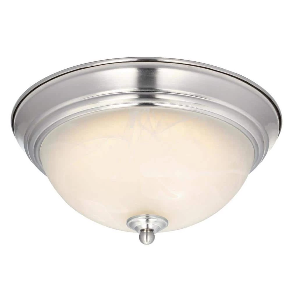 This Westinghouse Dimmable LED Ceiling Fixture features a traditional design and a luxurious brushed nickel finish. The white alabaster glass filters the light for beautiful illumination and a decorative cap and finial add perfect finishing touch to the fixture. This fixture includes integrated LED technology with no bulbs to replace. It consumes only 14-1/2-Watt which is 75% less energy than an incandescent fixture. The light output of 930 Lumens is equivalent to 1-60W incandescent bulb. The fixture is dimmable giving you the ability to adjust brightness when used with a dimmer switch. This elegant ceiling light can be installed on low or high ceilings, and its compact size makes it ideal for smaller spaces. The fixture is 4-3/4 in. x 11 in. (H x D). This indoor light fixture is ETL listed for safety. It is backed by a 5-year limited manufacturer’s warranty against defects in materials and workmanship. Westinghouse is a trusted, global brand. Westinghouse knows lighting and offers products with exceptional quality, reliability and functionality. Product reference number 64005.