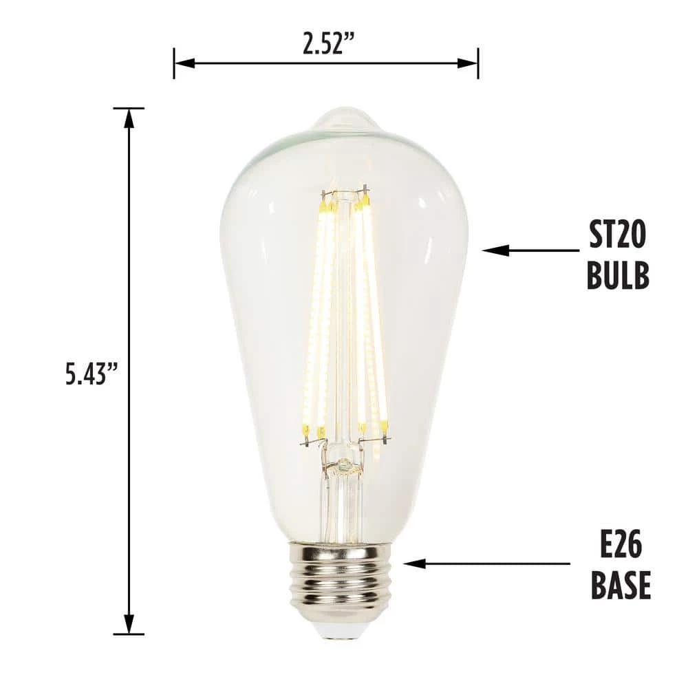 This Westinghouse Filament ST20 Dimmable LED Light Bulb is aesthetically designed to look like an old-style light bulb, making it ideal for use in decorative fixtures where the visible bulb is part of the design (6-pack). Soft white color temperature (2700K) adds beautiful ambiance, is suitable for enclosed fixtures, and approved for damp locations like outdoor-rated wall and post lantern fixtures. Reduces energy costs, saving up to 89% over its lifetime when used in place of standard incandescent 60-Watt light bulbs. Make the switch to LED light bulbs from Westinghouse, a trusted, global brand. Westinghouse knows lighting and offers products with exceptional quality, reliability and functionality. Product reference number 45183.