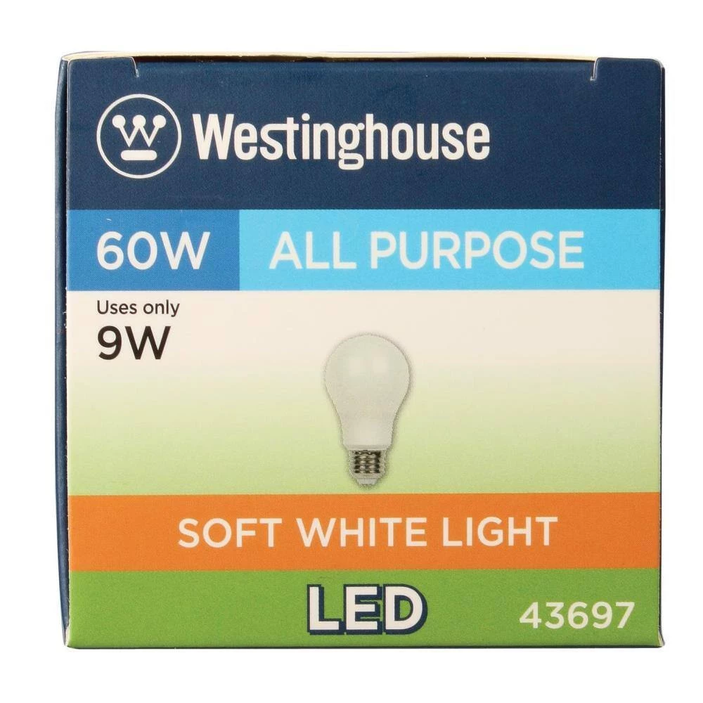 The Westinghouse 9 Watt Omni A19 LED Light Bulb has the look of traditional incandescent light bulbs, ideal for your everyday lighting needs. The soft white light is perfect for use in pendant lights, ceiling fixtures, table and floor lamps. Suitable for use in enclosed fixtures and damp locations in outdoor rated wall and post lanterns. Reduce energy costs with this LED and save up to $140.25 over the lifetime of the bulb when used in place of a standard 60-watt incandescent. Making the switch to Westinghouse LED light bulbs provides significant energy saving benefits. Westinghouse is a trusted, global brand. Westinghouse knows lighting and offers products with exceptional quality, reliability and functionality. Product reference number 43697.