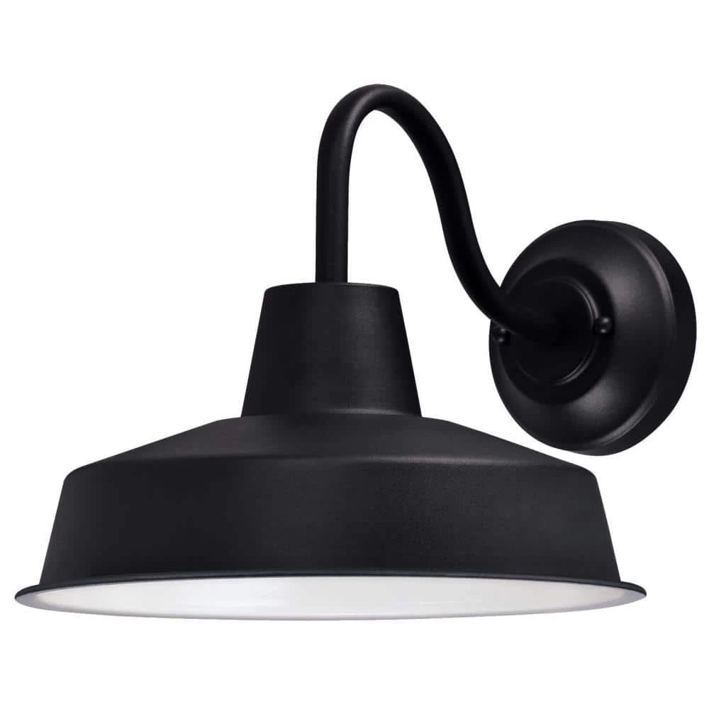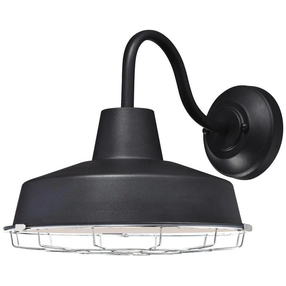 This energy efficient Westinghouse Academy Outdoor LED Wall fixture features a textured black finish on steel for enduring illumination that saves you money. This fixture includes long-lasting integrated LED technology with no bulbs to replace, which is ideal for hard-to-reach areas. Consumes only 13.4-Watt, 78% less energy than an incandescent fixture, with the brightness equivalent to 1-60W bulb. The removable chrome cage adds to the fixture’s industrial vintage design. The Academy provides a functional yet stylish option for your garage, barn or industrial-style setting. It directs light downward which reduces light pollution making it dark sky friendly. Install in your front or back entryway or by your garage door, deck area, patio, balcony or side entrance. The fixture is 11 in. high x 12-1/8 in. wide and extends 15-1/8 in. from the wall. It is 4-1/8 in. height from the center of the outlet box. The back plate measures 5 in. (D). It is backed by a 5-year limited warranty. Westinghouse is a trusted global brand. Westinghouse knows lighting and offers products with exceptional quality, reliability and functionality. Product reference number 62047.