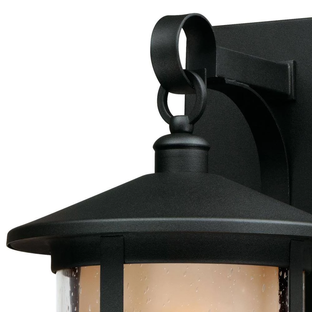 Light up your home’s exterior with the Westinghouse Albright Outdoor 1-Light Medium Wall Lantern. This traditional lantern casts a warm welcome, featuring double cylinders of amber and clear seeded glass and a rich textured black finish. Decorate your front or back entryway with this outdoor wall light. Install next to a garage door, porch, or balcony. This Westinghouse wall mount lantern is ETL/CETL listed for safety. It is backed by a 5-year manufacturer’s warranty against defects in materials and workmanship. Westinghouse is a trusted, global brand. Westinghouse knows lighting and offers products with exceptional quality, reliability and functionality. Product reference number 63124.