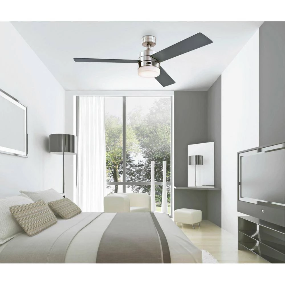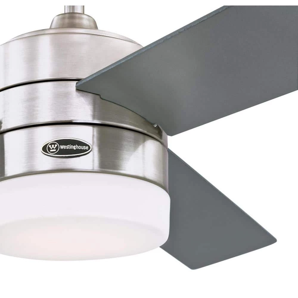 The Westinghouse Alta Vista ceiling fan offers a clean, minimalist look in a brushed nickel ceiling fan finish. An integrated, dimmable LED light kit with opal frosted glass provides additional energy and cost-saving benefits, plus, it eliminates the need to change bulbs in hard-to-reach ceiling fans. Remote control included for convenient operation. Add sleek, modern ceiling fan style to any large room, from bedrooms to living rooms, while enjoying year-round comfort. Backed by a lifetime warranty on the motor and a 2-year warranty on all other parts. Westinghouse is a trusted, global brand. Westinghouse knows lighting and offers products with exceptional quality, reliability and functionality. Product reference number 72257.