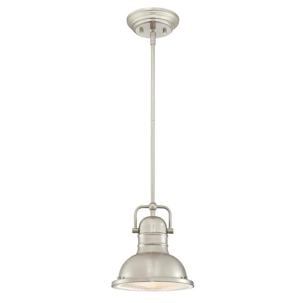 Make a statement with the Boswell 1-Light LED Mini Pendant and enhance your home with energy-efficient illumination. This versatile, vintage-style mini pendant is finished in a sleek brushed nickel. The prismatic lens of durable, frosted acrylic evokes and industrial feel. Install above a kitchen island, in a dining area, bedroom, or bathroom. The pendant measures 41-5/16 in. x 8-3/4 in. (H x D), install (1, 2 or 3) 9-1/2 in. rod to customize height. Westinghouse is a trusted, global brand. Westinghouse knows lighting and offers products with exceptional quality, reliability and functionality. Product reference number 63346.