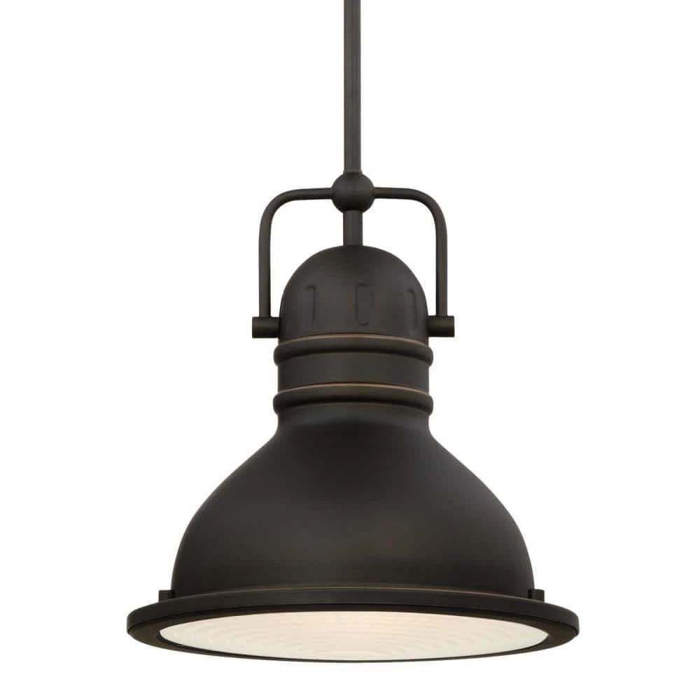 Make a statement with the Boswell 1-Light LED Pendant and enhance your home with energy-efficient illumination. This versatile, vintage-style pendant is finished in oil rubbed bronze with hand-rubbed highlights. A prismatic lens made of durable acrylic accentuates the industrial look. Install above a kitchen island, in a dining area, bedroom, bathroom or as a defining touch in an Industrial-styled room. Westinghouse is a trusted, global brand. Westinghouse knows lighting and offers products with exceptional quality, reliability and functionality. Product reference number 63087A.