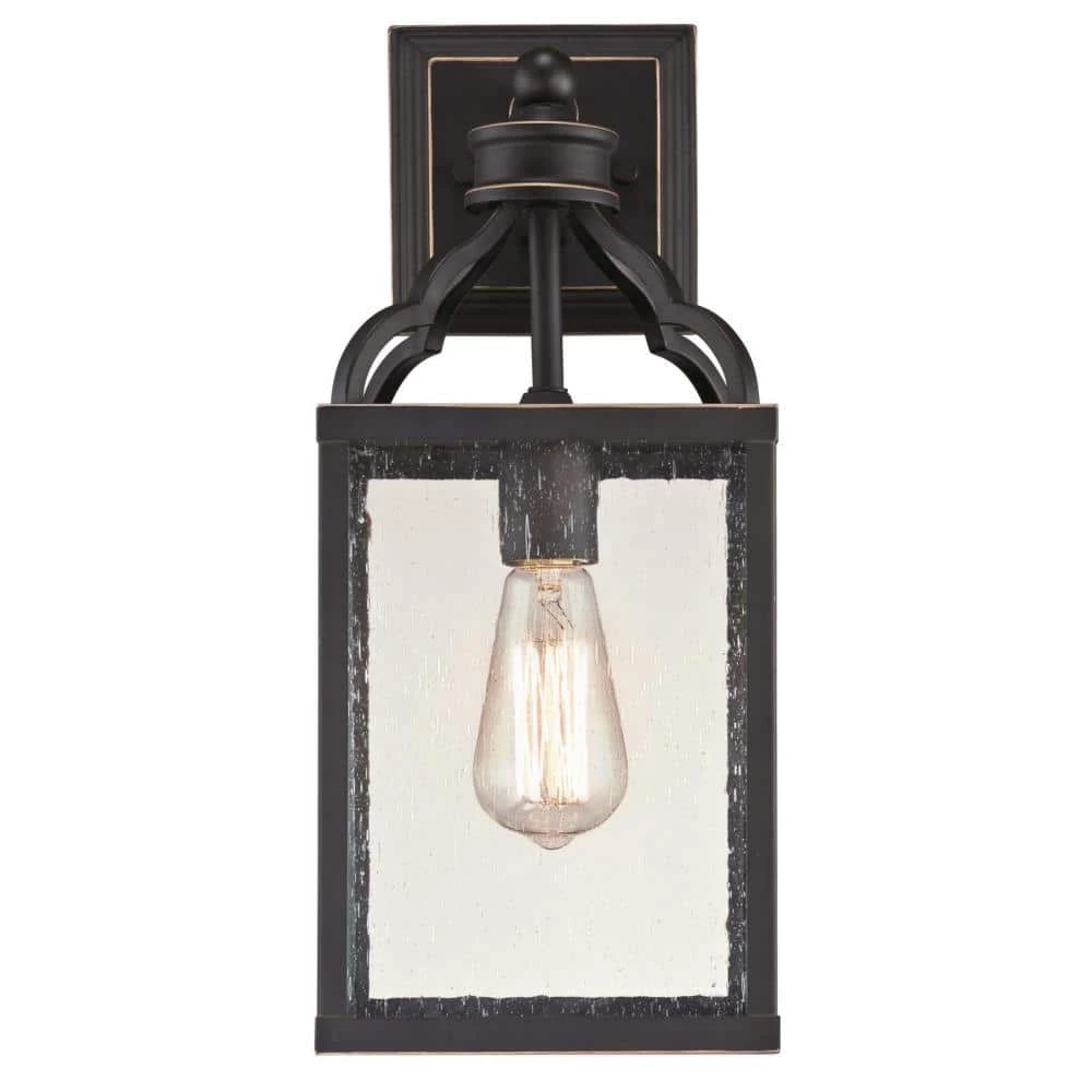 The Cardinal One-Light Outdoor Wall Lantern brings statement-making illumination to your home’s exterior. The combination of clear seeded glass and oil rubbed bronze finish creates a sophisticated look. Add an eye-catching glow to any outdoor setting. Decorate your front or back entryway with this outdoor wall light. Install next to a garage door, porch or balcony. This Westinghouse wall mount fixture is backed by a 5-year manufacturer’s warranty against defects in materials and workmanship. Westinghouse is a trusted, global brand. Westinghouse knows lighting and offers products with exceptional quality, reliability and functionality. Product reference number 63592.