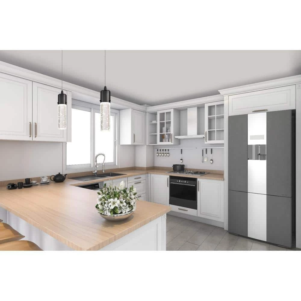 Captivating style and technology fuse in the Cava 1-Light Mini Pendant where a solid bubble glass cylinder is illuminated with dazzling LED light. The glamourous gun metal finish completes this luxurious one-light mini pendant enhancing your kitchen island, dining area, bedroom or bathroom. The dimmable LED pendant light is long-lasting, providing years of bright light. Using only 8-watts of energy, the integrated LED provides beautiful ambient light equivalent to a 40 watt incandescent light bulb. And, you will never need to replace a single bulb. Westinghouse knows lighting and offers products with exceptional quality, reliability and functionality. Product reference number 63554.