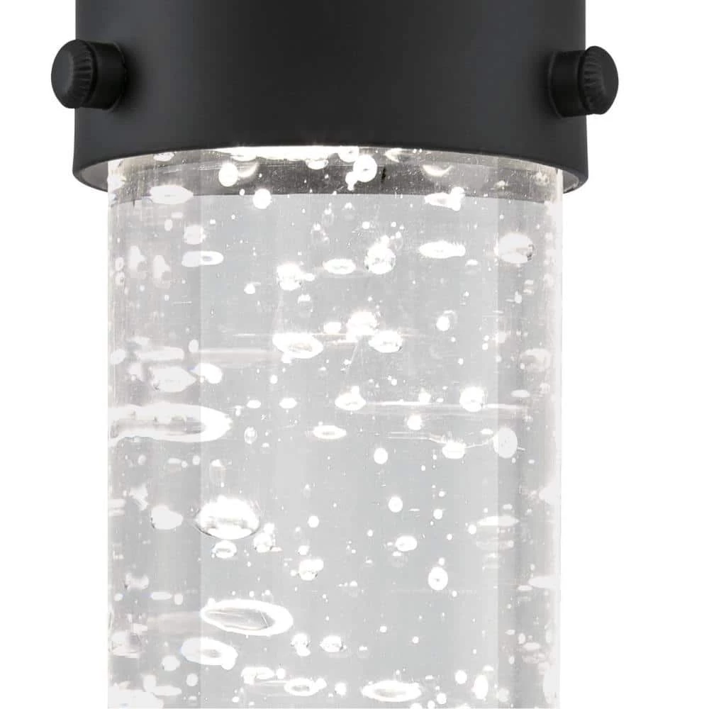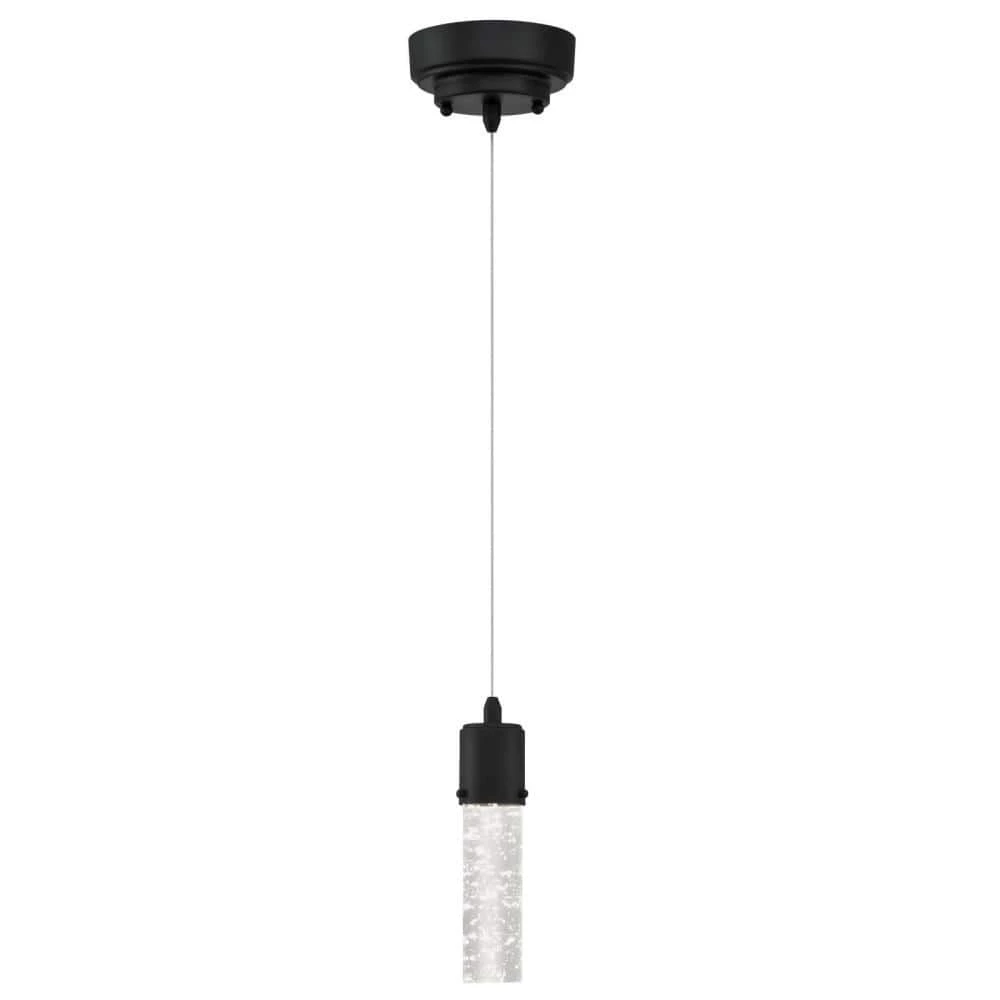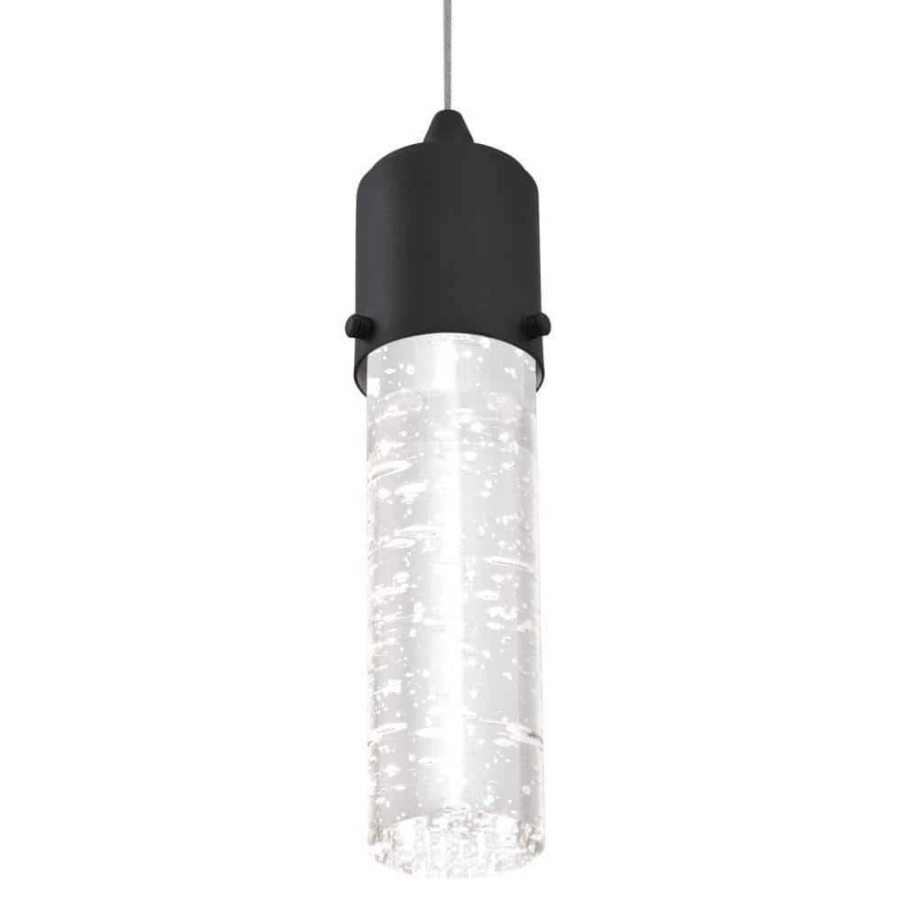 Captivating style and technology fuse in the Westinghouse Cava mini pendant where the solid bubble glass cylinder illuminates with dazzling LED light. The glamorous matte black finish completes the luxurious look highlighting a contemporary kitchen island, dining area, bedroom or bathroom. The dimmable LED pendant light is long-lasting, providing years of bright light. Using only 8-watts of energy, the integrated LED provides beautiful ambient light equivalent to a 40 watt incandescent light bulb. And, you will never need to replace a single bulb. Westinghouse is a trusted, global brand. Westinghouse knows lighting and offers products with exceptional quality, reliability and functionality. Product reference number 63723.