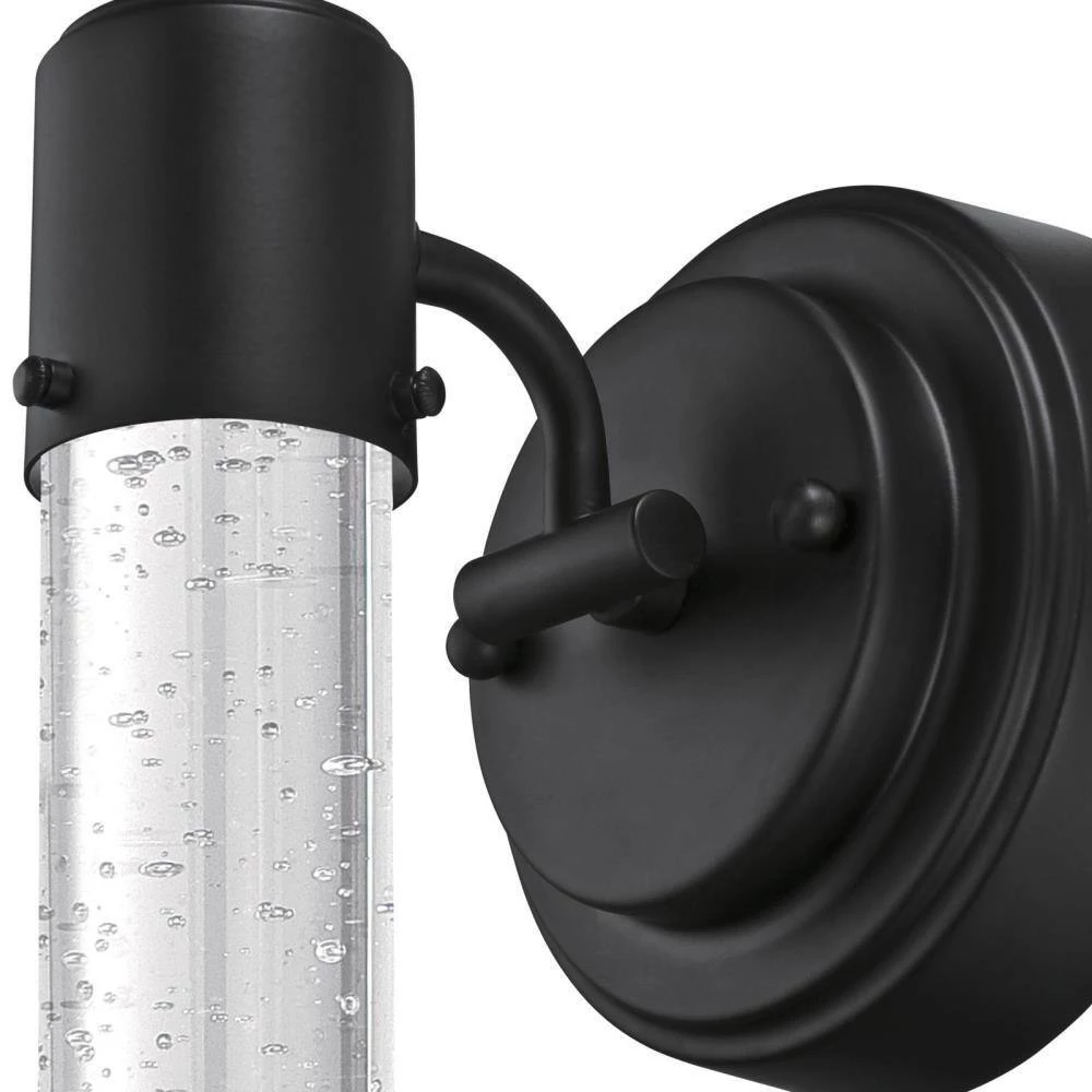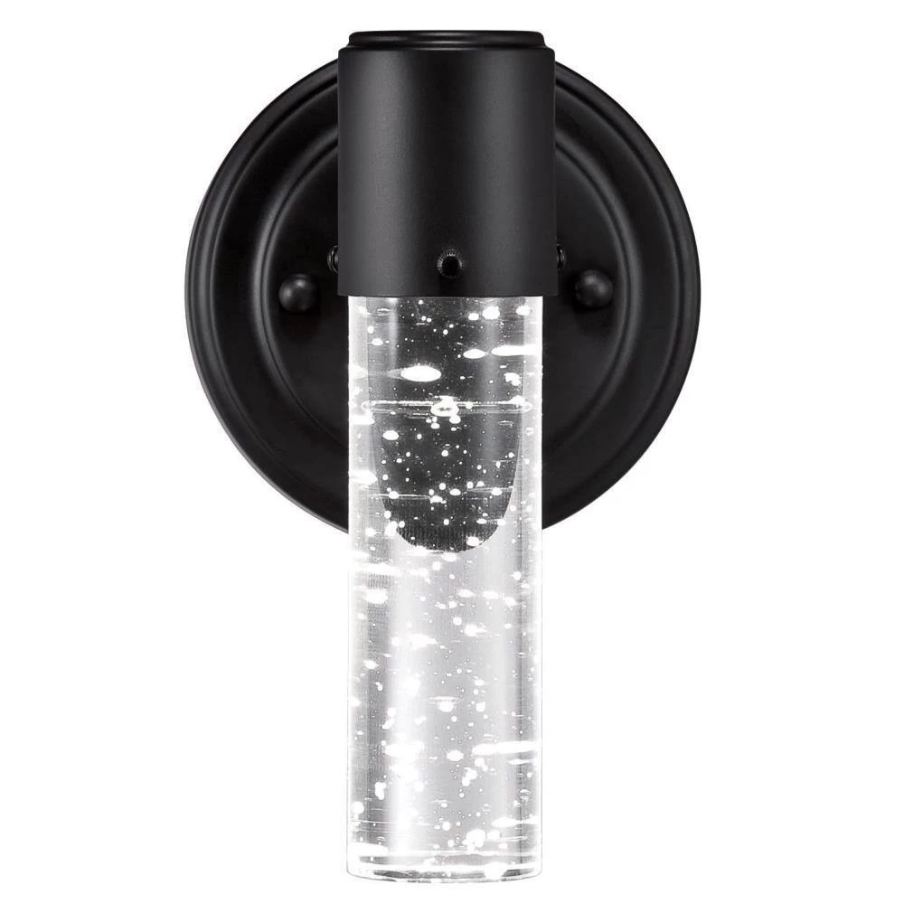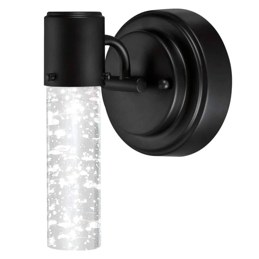Fusing captivating style and technology, the Westinghouse Cava wall light’s solid bubble glass cylinder illuminates with dazzling LED light. Enhanced with a glamorous matte black finish, this luxurious 1-light wall fixture will energize any space, from bathrooms, living rooms, and bedrooms to hallways. The dimmable 1-light wall light is long-lasting, providing years of bright light. Using only 8-Watt of energy, the integrated LED provides beautiful ambient light equivalent to a 40-Watt incandescent light bulb. And, you will never need to replace a single bulb. The wall fixture measures 7-3/4 in. x 4-15/16 in. (H x W) and extends 5-11/16 in. from the wall. Backed by a 5-year limited manufacturer’s warranty against defects in materials and workmanship. Westinghouse is a trusted, global brand. Westinghouse knows lighting and offers products with exceptional quality, reliability and functionality. Product reference number 63724.