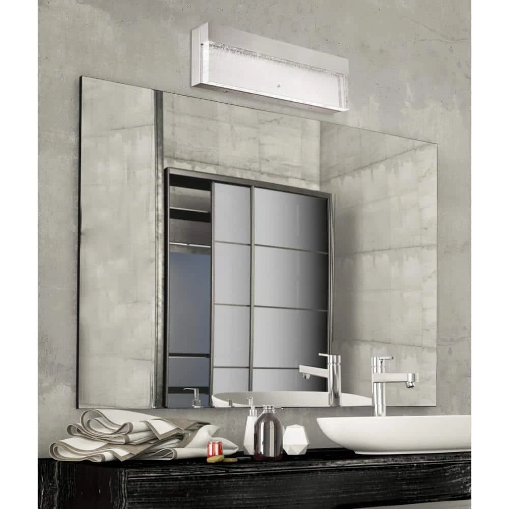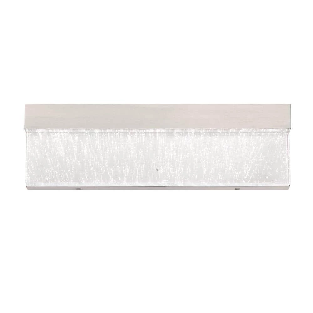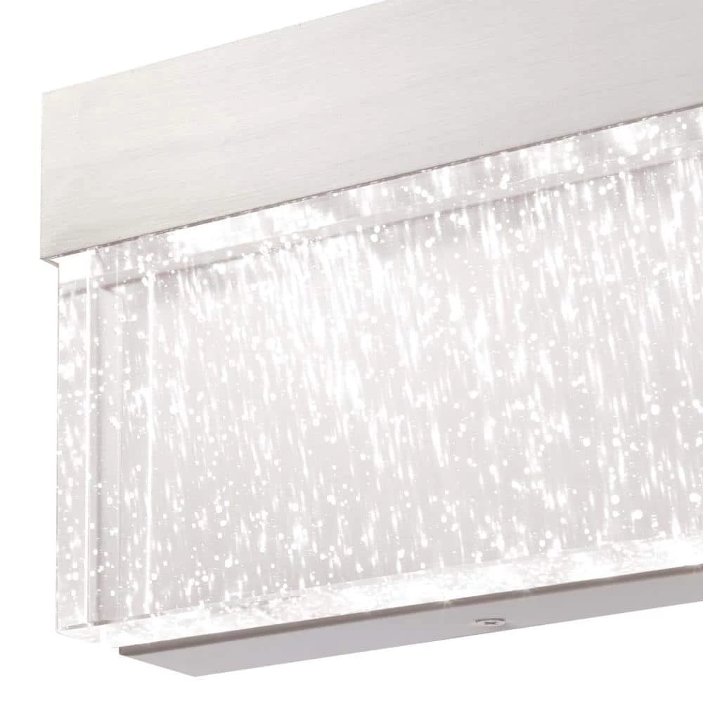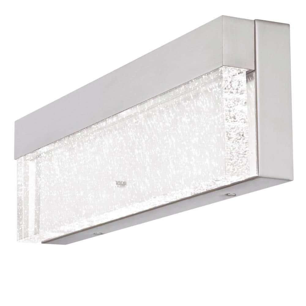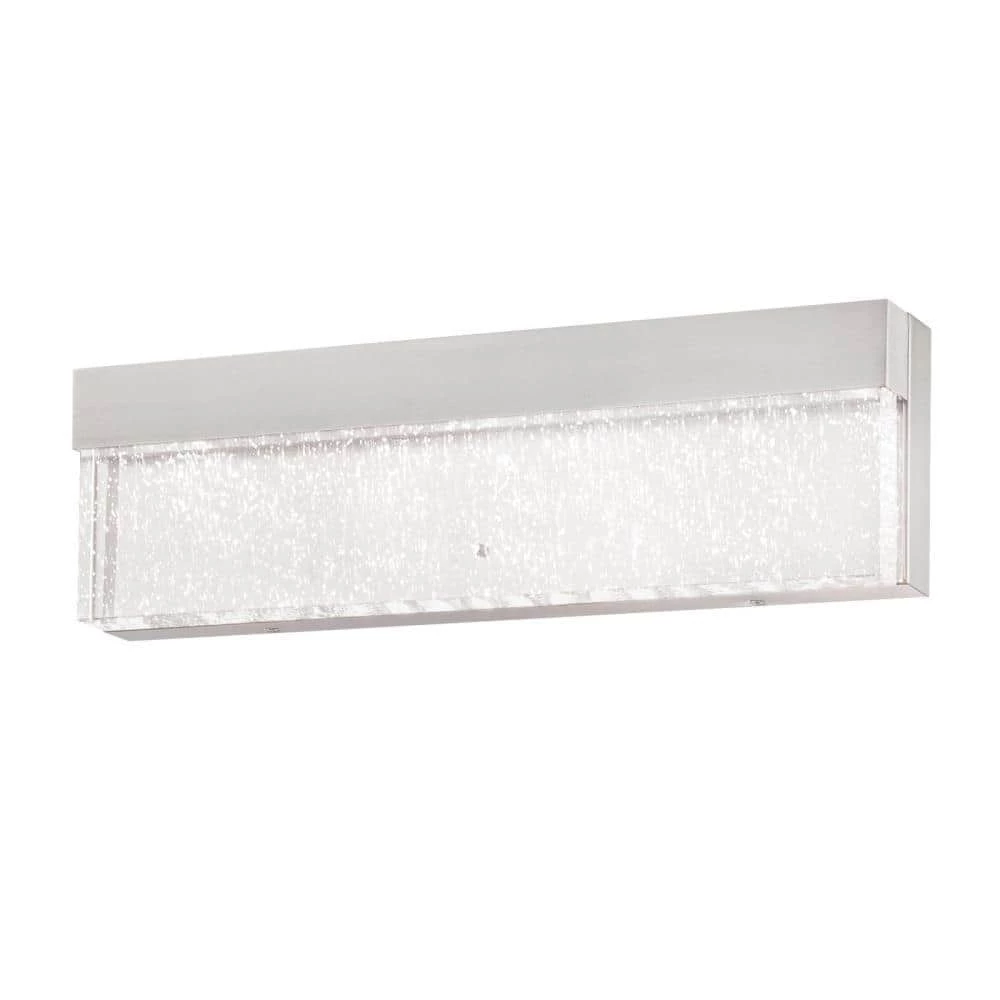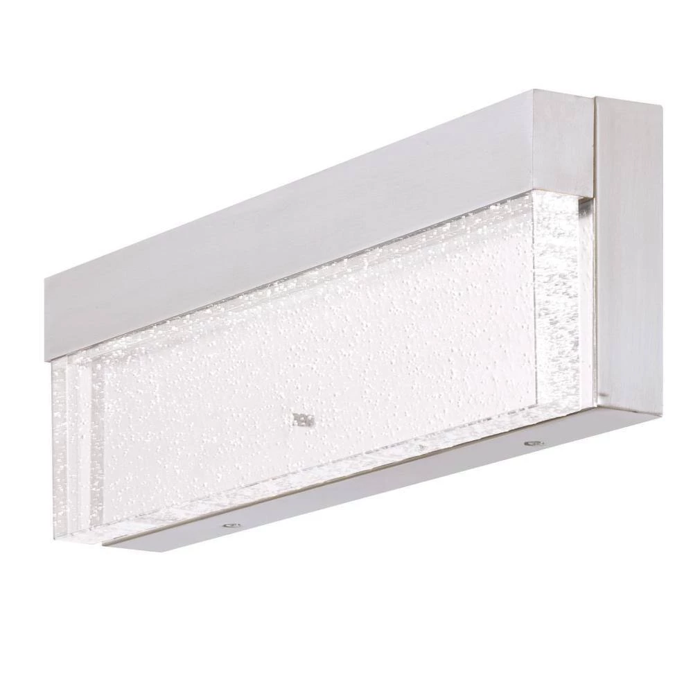 Captivating style and modern technology come together in the Westinghouse Cava II LED wall sconce, where solid bubble glass sparkles with LED illumination. Enhanced with a brushed nickel finish, this stunning 18 in. wall fixture invigorates any space with its brightness. Perfect for task or ambience, the long-lasting, dimmable LED uses only 20-watts of energy, providing light equivalent to a 75 watt incandescent. The wall fixture measures 5-1/2 in. x 18 in. (H x W) and extends 2-3/4 in. from the wall. Westinghouse is a trusted, global brand. Westinghouse knows lighting and offers products with exceptional quality, reliability and functionality. Product reference number 65767.