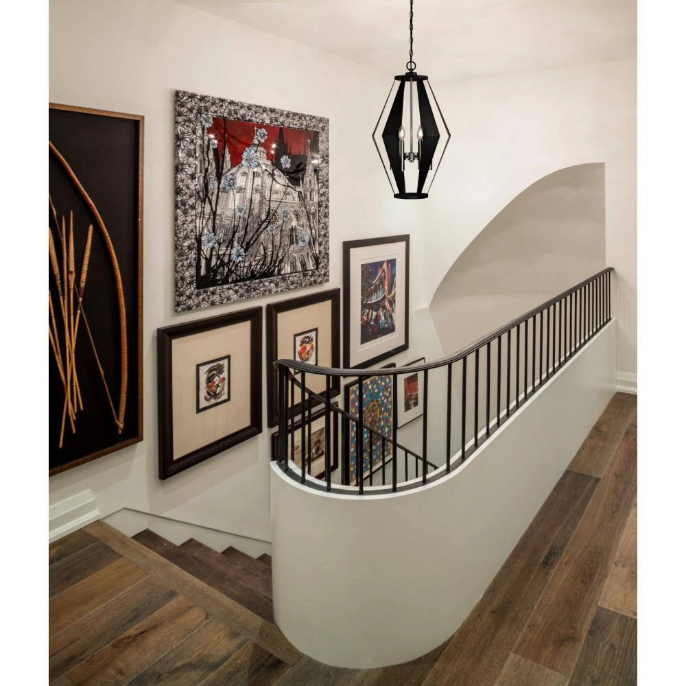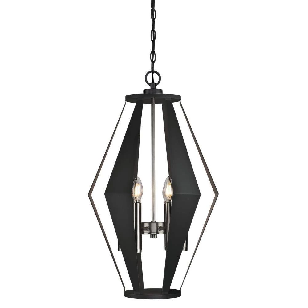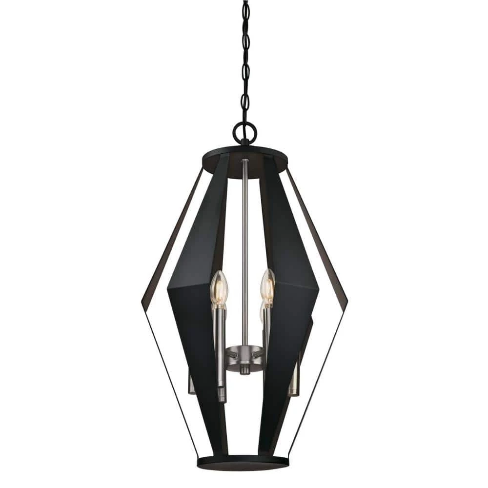 The Westinghouse Coltin chandelier’s striking mid-century appeal complements both modern and transitional decor. Finished in matte black, the bold metal bands reveal the dark pewter 4-light candelabra’s glowing ambiance. Add a touch of the unexpected to your dining room, living room, entryway or kitchen island. The chandelier measures 27-7/16 in. x 15-11/16 in. (H x D), chain length 36 in., cord length 60 in., maximum hanging length 65 in., can be installed on sloped ceilings. Westinghouse is a trusted, global brand. Westinghouse knows lighting and offers products with exceptional quality, reliability and functionality. Product reference number 63677.