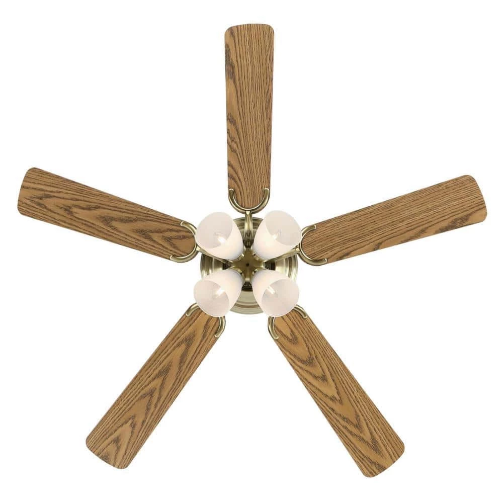 - 5 blades with oak and walnut finishes coordinate with the fan and give you options for customization