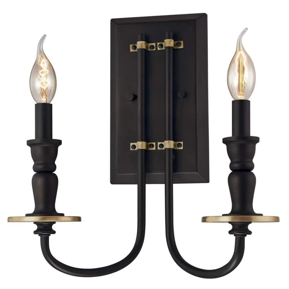 The elegant design of the Cresting 2-Light Wall Fixture blends with many decor styles, from historic to cottage, to farmhouse. The antique brass accents complement the deep oil rubbed bronze finish, creating this unique and updated traditional design. Install this wall fixture in the bathroom, over vanity or in a dining room for a touch of ambience. The wall fixture measures 14-5/16 in. x 13-1/4 in. (H x W), extends 7-1/4 in. from the wall and back plate 9-7/16 in. x 5-1/2 in. (H x W). Westinghouse is a trusted, global brand. Westinghouse knows lighting and offers products with exceptional quality, reliability and functionality. Product reference number 63501.