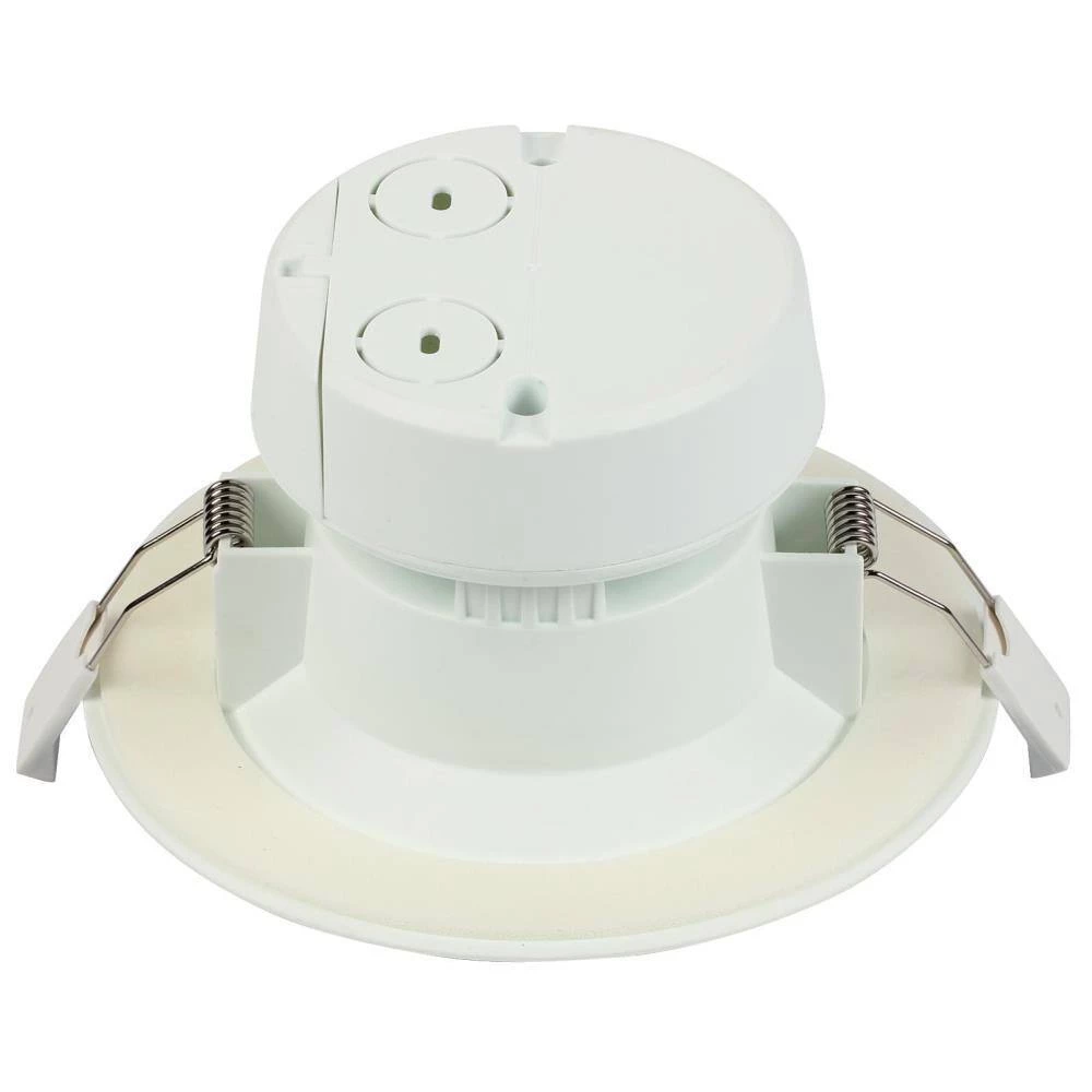 The Westinghouse 7-Watt 3000K Dimmable 4 in. Direct Wire Recessed LED Downlight is perfect for everyday use. It is ideal for new construction, featuring an integrated junction box that allows for direct wire installation. This durable LED light is suitable for wet locations and provides long-term use and dependability. This convenient one piece downlight works in IC and Non-IC applications. Compatible with most dimmers. It is perfect for kitchens, bathrooms, family rooms, offices, retail settings or anywhere recessed lighting can be used. All installation hardware is hidden and convenient clips ensure a flush fit with ceilings, while pre-attached white trim creates a seamless look. Reduce energy costs with this LED and save up to 84% over its lifetime when used in place of a standard 45-watt incandescent. Westinghouse is a trusted, global brand. Westinghouse knows lighting and offers products with exceptional quality, reliability and functionality. Product reference number 50870.