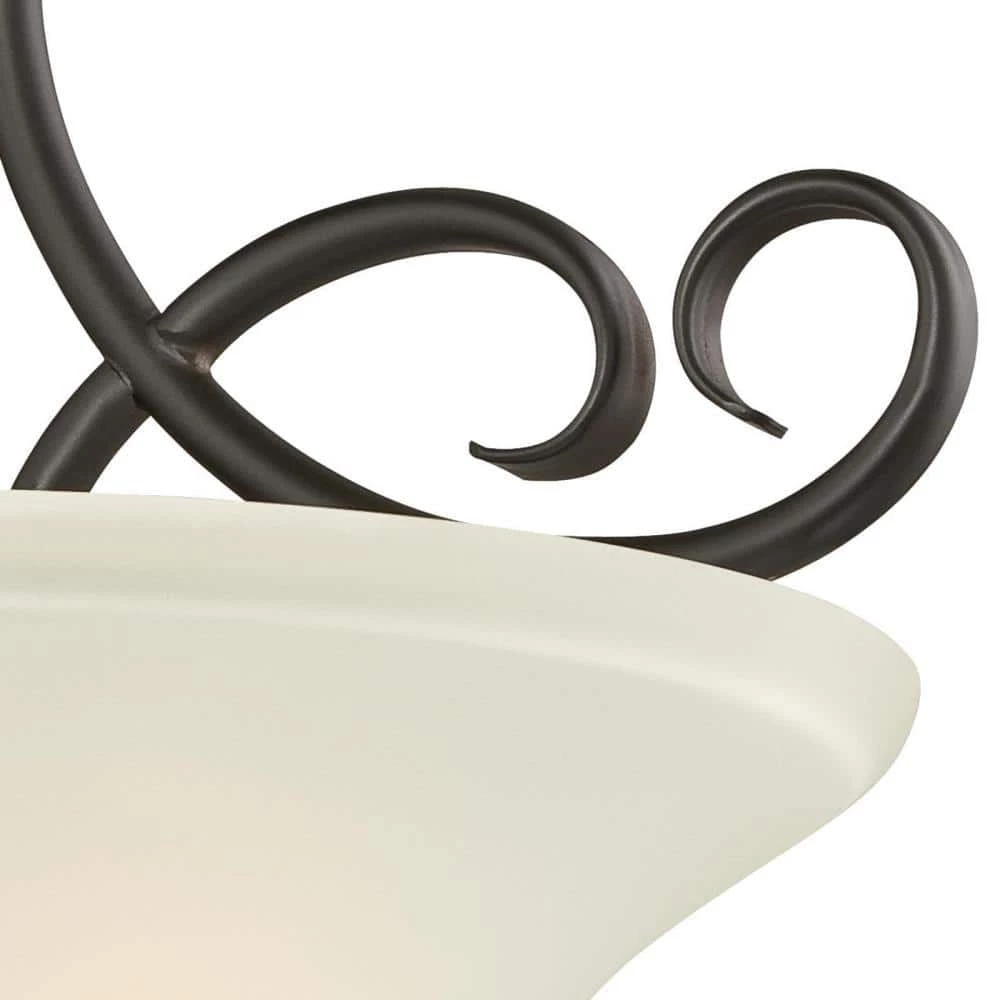 The Dunmore 2-Light Semi-Flush Mount is ornamented by graceful curves that swirl into a delicate silhouette. The charming details are finished in a rich oil rubbed bronze that stands out above the frosted glass shade. This elegant ceiling fixture will add luxurious style and beautiful illumination when installed in a hallway, foyer, living room, dining room or bedroom. This 2-light fixture measures 12-5/16 in. x 14-1/2 in (H x D). This Westinghouse indoor ceiling fixture is ETL/CETL listed for safety. It is backed by a 5-year limited manufacturer’s warranty against defects in materials and workmanship. Westinghouse is a trusted, global brand. Westinghouse knows lighting and offers products with exceptional quality, reliability and functionality. Product reference number 63065.
