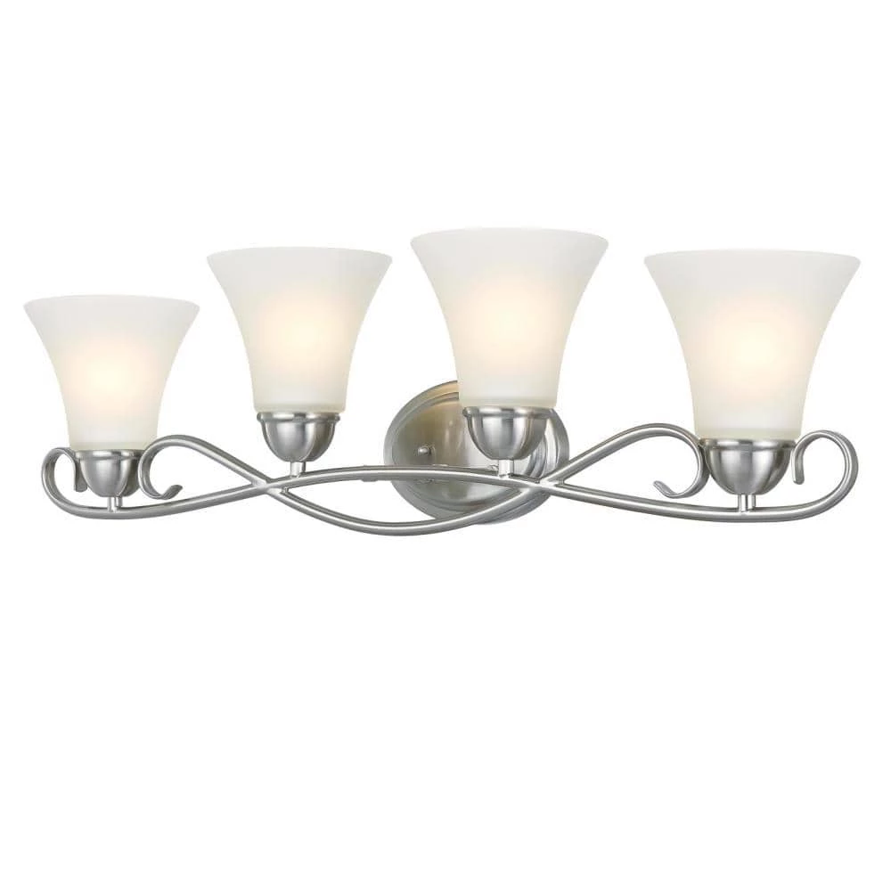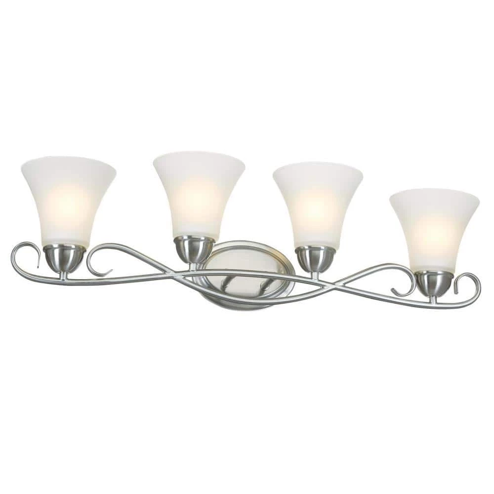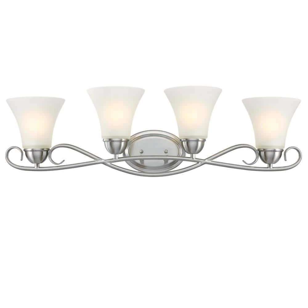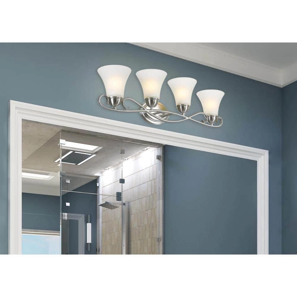 - 4-light indoor wall fixture is perfect for general or task lighting, install bathroom lights over mirror, a double sink or large vanity
