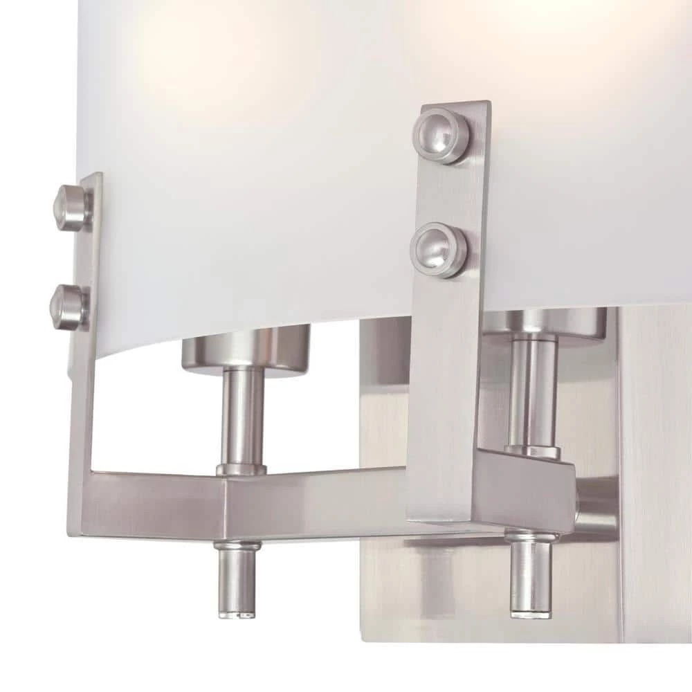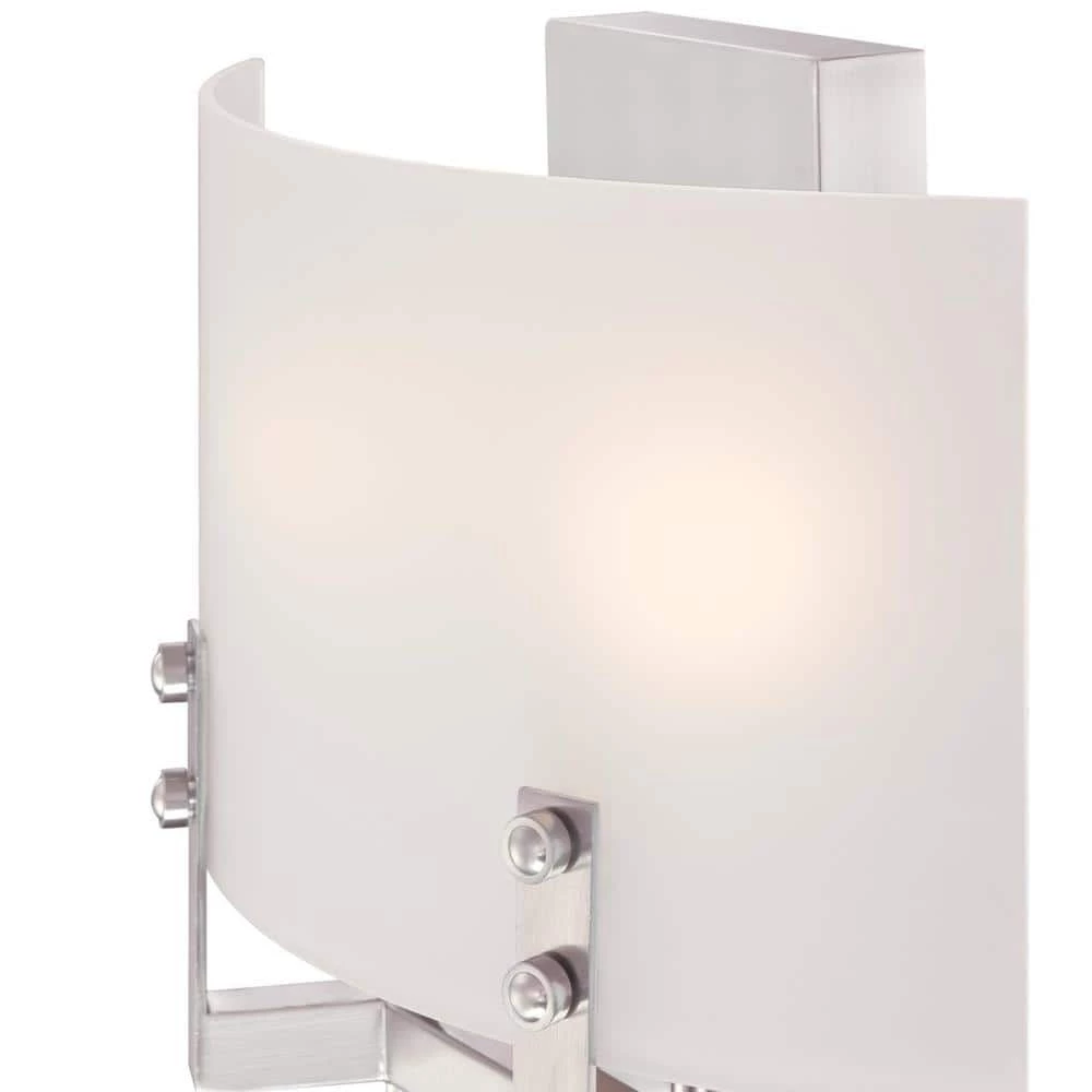 Bring the distinctive look of the Westinghouse Enzo James wall light into any contemporary space. The brushed nickel finish creates a lustrous backdrop to the softly curved, glass panel. Frosted glass provides beautiful ambiance and simple elegance. Add as a contemporary design touch in a bathroom, bedroom or dining room. The wall fixture measures 11 in. x 13-9/16 in. (H x W), extends 5-1/8 in. from the wall and back plate 11 in. x 4-3/4 in. (H x W). Westinghouse is a trusted, global brand. Westinghouse knows lighting and offers products with exceptional quality, reliability and functionality. Product reference number 63696.