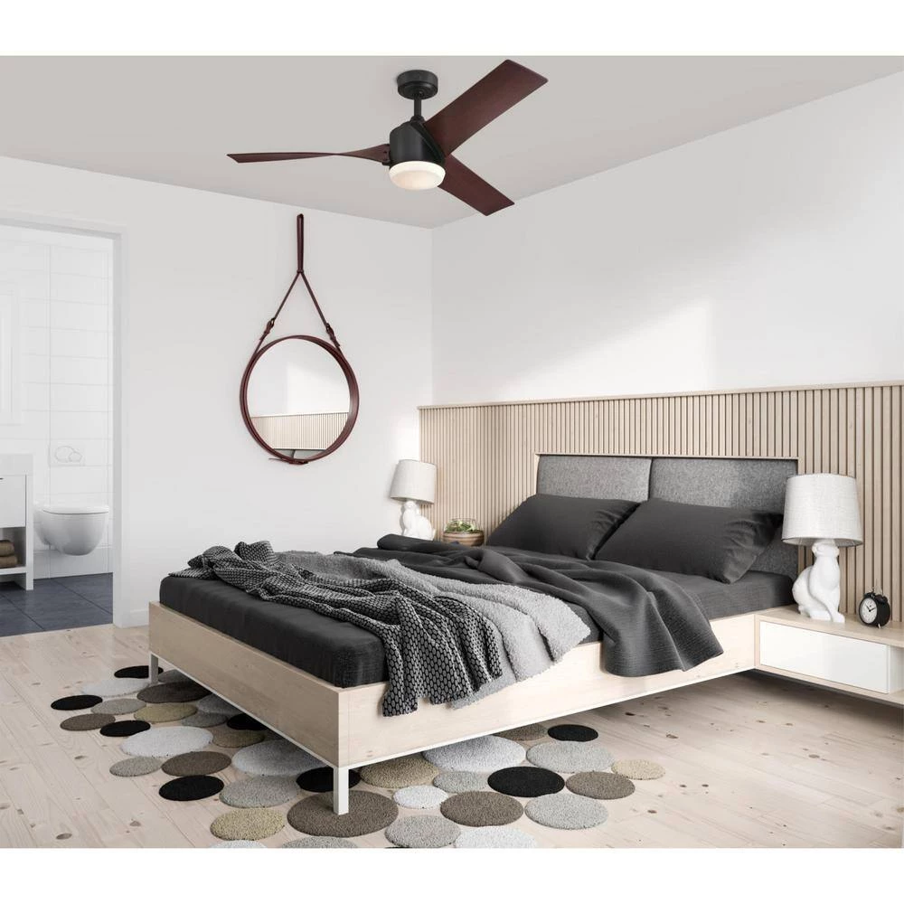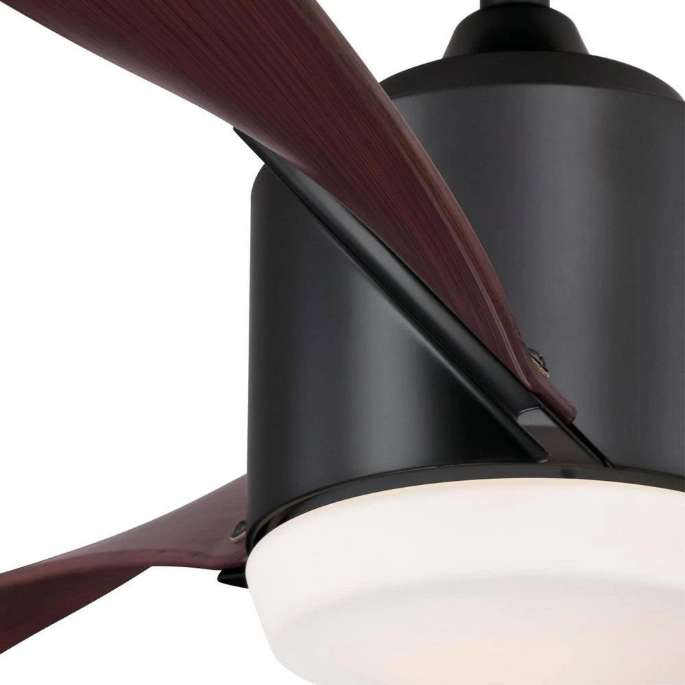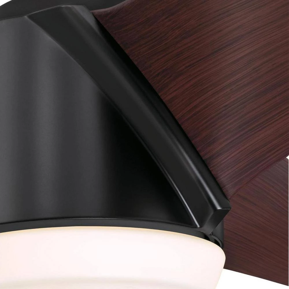 - 3 curved, walnut finish blades complement the matte black ceiling fan finish