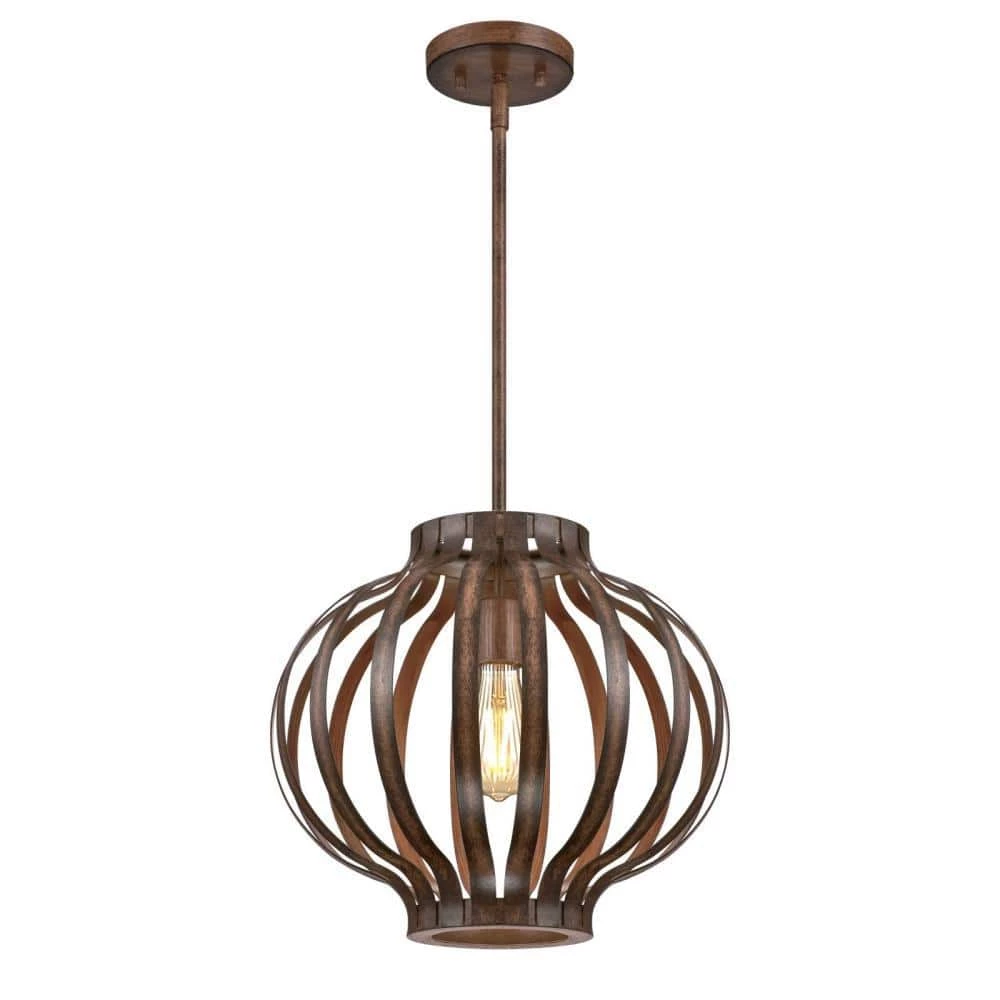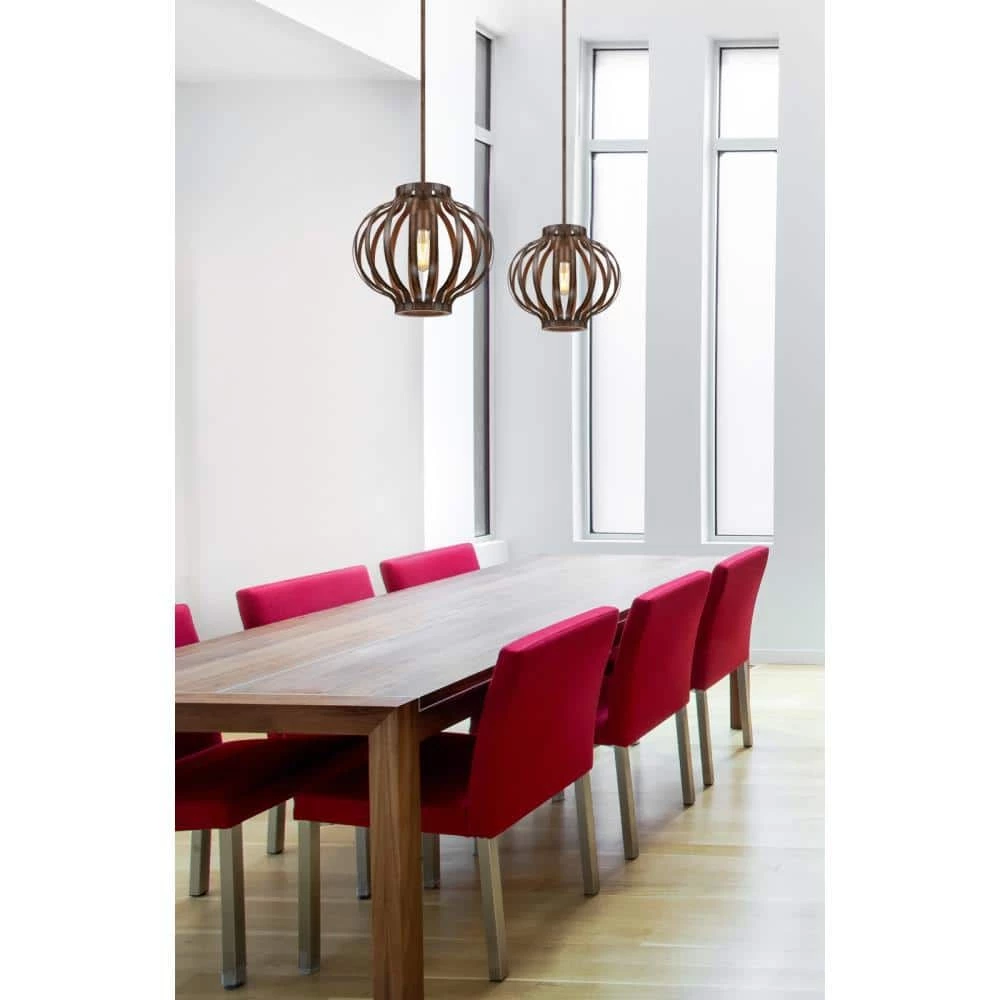 - 1-light pendant with geometric design, install one or more over a kitchen island or dining room table
