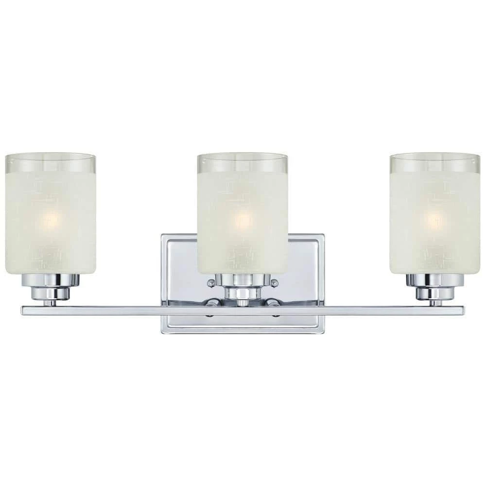 The Westinghouse Hansen 3-Light Wall Fixture adds sophisticated transitional look to your home. This fixture features a luminous chrome finish which accentuates its classic lines. 3 white linen cylinder shades with translucent band add dimension and texture while filtering the light for inviting illumination. Install this wall fixture in the bathroom, vanity or dining room for a refined touch. Its larger size works well for bigger rooms. You can position the fixture up or down to suit your needs. The fixture is 7-13/16 in. x 19-11/16 in. (H x W) and extends 6-1/2 in. from the wall. This Westinghouse indoor wall fixture is ETL/CETL listed for safety. It is backed by a 5-year limited manufacturer’s warranty against defects in materials and workmanship. Westinghouse is a global brand with a simple philosophy: make life easier for everyone who buys its products. Westinghouse products are designed for exceptional quality, reliability, and functionality. Product reference number 63438A.