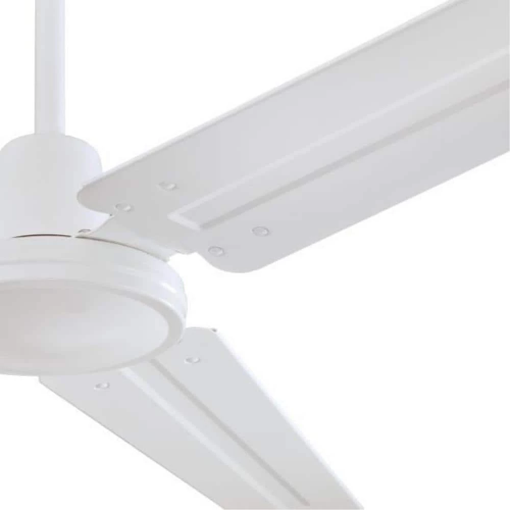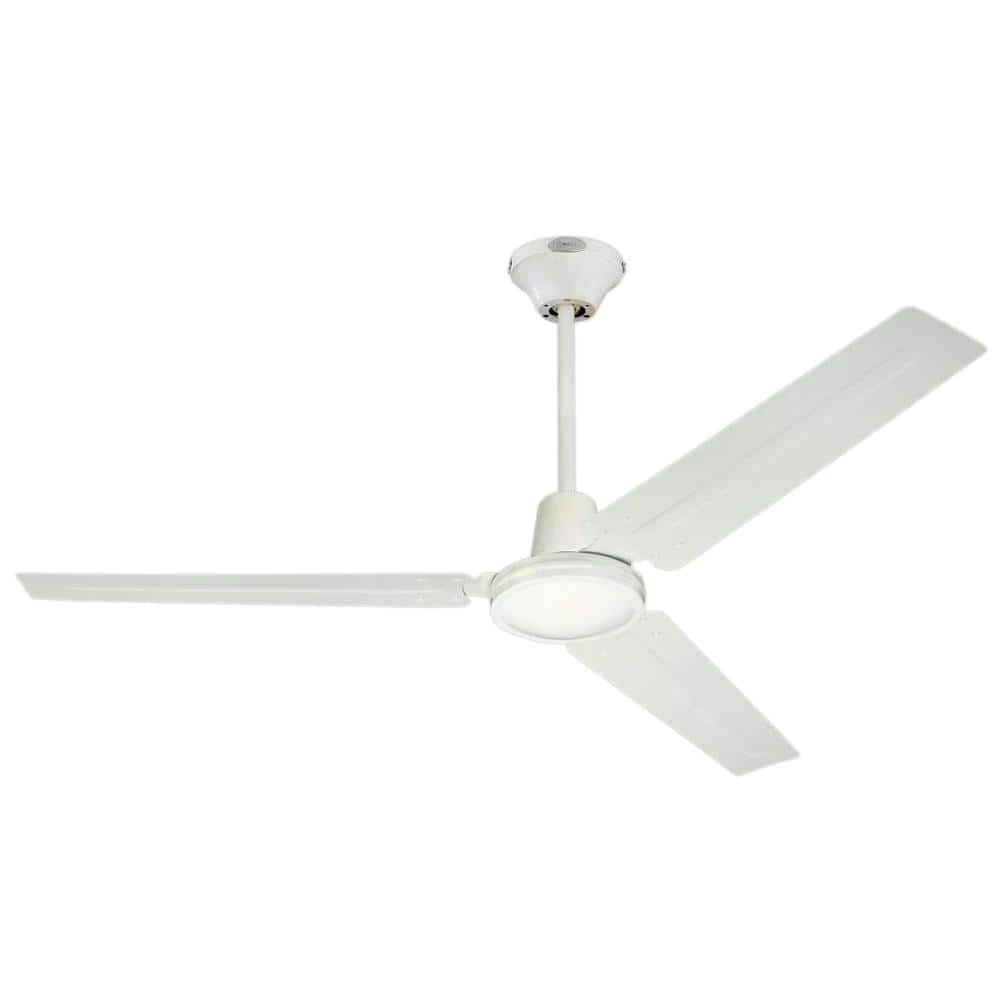 The 56 in. Industrial ceiling fan is durably constructed for commercial, industrial and residential applications. In a category all its own, the Industrial fan is designed to be hung at least 10 ft. above the floor and meant for cooling large areas, such as workshops, high ceiling great rooms, two-story entryways and lofts. With a clean white finish and 3 matching steel blades, the simple, understated design of this fan is well-recognized for its modern, mechanical appeal. Because industrial style fans are commonly used for air movement in work areas, the high performance motor provides greater air circulation than most standard ceiling fans and has 5 speeds for comfort control. Performance statistics include excellent airflow of 7,105 CFM and airflow efficiency rating of 113 CFM/W, using only 63-Watt of energy at high speed. Backed by a 15-year limited warranty on the motor and a 2-year warranty on all other parts, this fan comes with everything you need for an easy installation. Westinghouse is a trusted, global brand. Westinghouse knows lighting and offers products with exceptional quality, reliability and functionality.