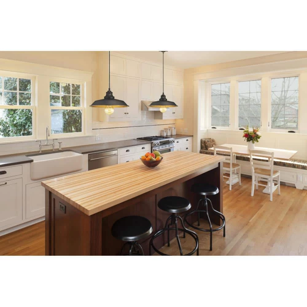 The Westinghouse Iron Hill 1-Light Pendant brings vintage-industrial style to your home. Oil rubbed bronze finish with highlights, an antique style shade, and braided cord add retro style to any setting. Metallic bronze finish inside the shade adds two-tone charm while enhancing the warm illumination. Install this adjustable pendant in a kitchen, dining room, bedroom or bathroom for a touch of rustic charm and generous task lighting. Westinghouse is a trusted, global brand. Westinghouse knows lighting and offers products with exceptional quality, reliability and functionality. Product reference number 63447.