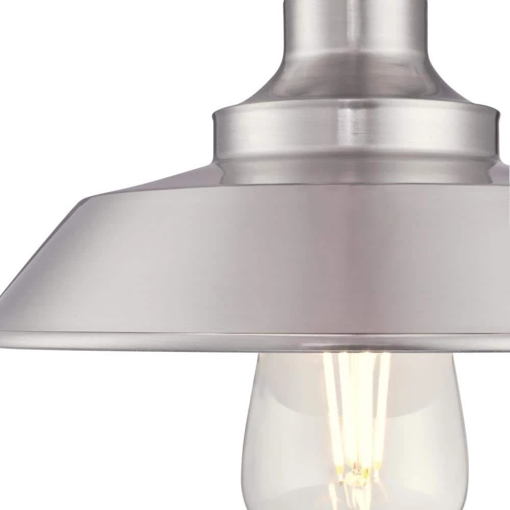 - Brushed nickel finish with industrial-style details enhances the retro-charm of this fixture