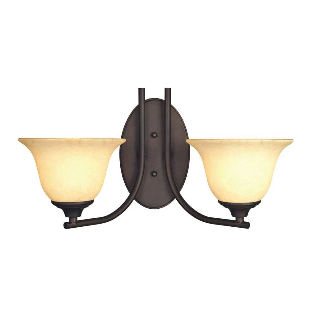 Bring a modern accent to your home with the Westinghouse Kings Canyon 2-Light Wall Fixture. Burnt scavo glass filters warm light into the room. A dark and dramatic oil rubbed bronze finish on the sleek arms and oval back plate creates an eye-catching contrast to the glass. Install this wall fixture in the living room, kitchen or dining room for a refined touch. You can position the fixture up or down to suit your needs. It measures 9-1/8 in. x 17 in. (H x W) and extends 7-1/2 in. from the wall. This Westinghouse interior wall fixture is UL listed for safety. It is backed by a 5-year manufacturer’s warranty against defects in materials and workmanship.
