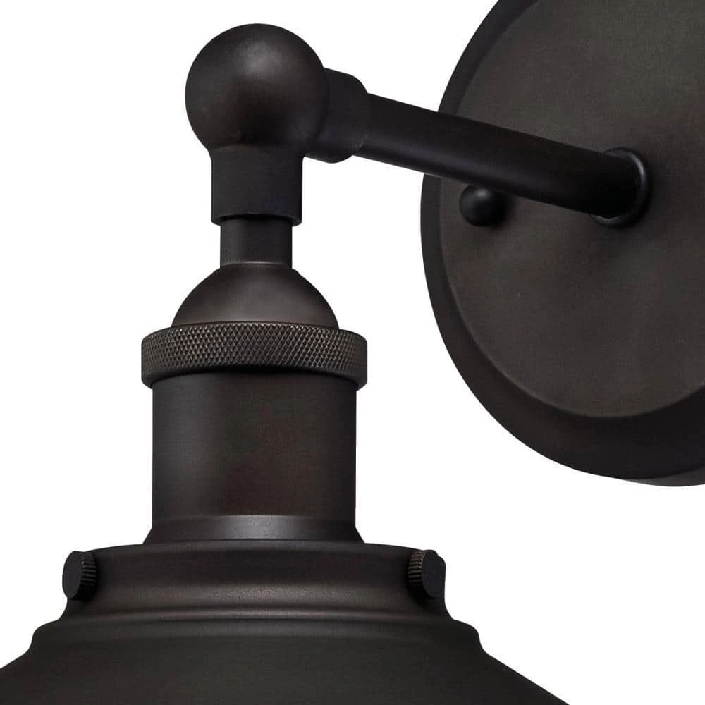 The retro design of this Louis 1-Light Wall Fixture adds distinct character and ambiance to a room. Featuring a rustic oil rubbed bronze finish, offset by the shade’s metallic bronze interior. Install this classic wall fixture in a bathroom or bedroom for a hint of vintage-inspired illumination. The wall fixture measures 8-9/16 in. x 9 in. (H x W), extends 10-1/2 in. from the wall and back plate 5 in. (D).This Westinghouse indoor wall fixture is ETL/CETL listed for safety. It is backed by a 5-year limited manufacturer’s warranty against defects in materials and workmanship. Westinghouse is a trusted, global brand. Westinghouse knows lighting and offers products with exceptional quality, reliability and functionality. Product reference number 63355.