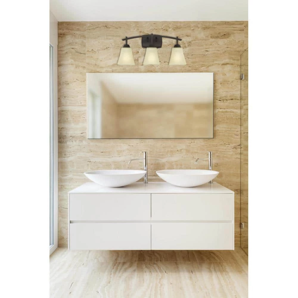 The Midori 3-Light Wall Fixture is a beautiful blend of organic and global design. This fixture’s clean lines are simple yet stunning, setting the tone for a relaxed atmosphere. Add textural interest and warmth to any setting with this fixture’s deep oil rubbed bronze finish and coordinating amber linen glass shades. Install this wall fixture in the bathroom or over a vanity for a luxurious touch and generous task lighting. Position the fixture up or down to suit your needs. The wall fixture measures 10-1/8 in. x 20-7/8 in. (H x W) and extends 7-1/16 in. from the wall. This Westinghouse indoor wall fixture is both ETL and CETL listed for safety. It is backed by a 5-year limited manufacturer’s warranty against defects in materials and workmanship. Westinghouse is a trusted, global brand. Westinghouse knows lighting and offers products with exceptional quality, reliability and functionality. Product reference number 63075.