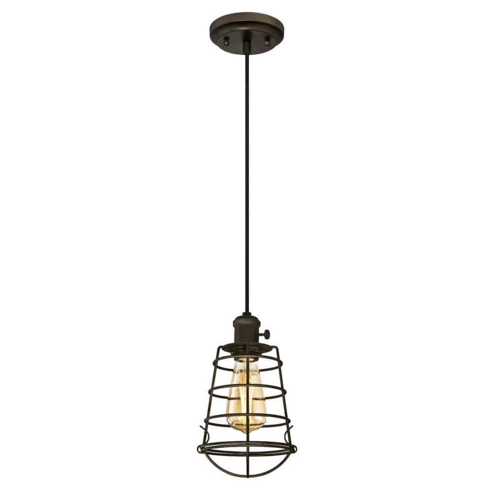 Crafted to look like the originals of the early 20th century, the Westinghouse Nolan Mini Pendant is enhanced with a timeless oil rubbed bronze finish. The open metal cage shade, braided cord and functional turn knob adds a nostalgic feel. A latch on the bottom of the shade allows for easy access to change the bulb. Suspend above your kitchen sink for plentiful light. Or, hang in multiples over your kitchen island to create a streamlined pattern while adding rustic charm. Westinghouse is a trusted, global brand. Westinghouse knows lighting and offers products with exceptional quality, reliability and functionality. Product reference number 63236.