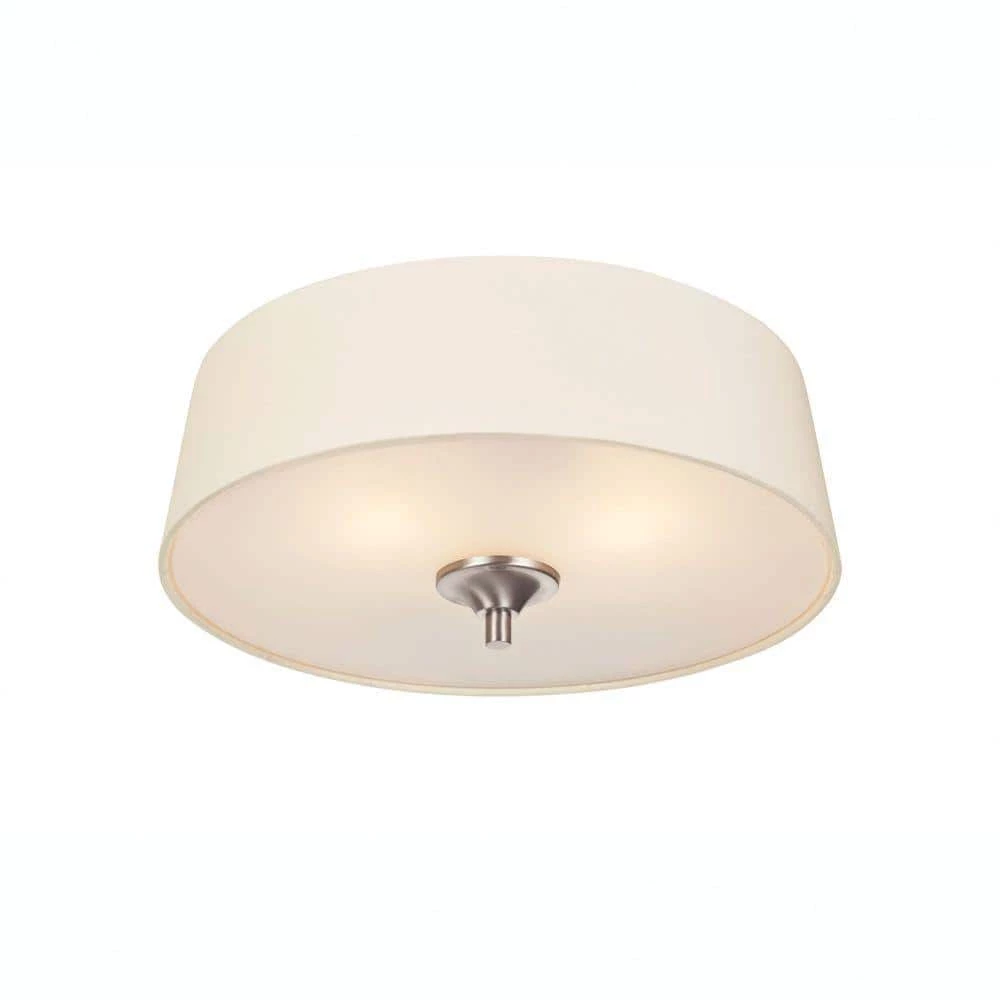 Add a modern focal point to your home with the Westinghouse Parker Mews 2-Light Ceiling Fixture. The round white linen fabric shade complements the brushed nickel finish on the base and sculpted finial. Install this ceiling fixture in bedrooms, living rooms or dining areas. Wherever you choose to hang it, you’ll enjoy the fixture’s modern style and soft, ample light. It measures 6 in. x 13 in. (H x D). This Westinghouse interior fixture is UL listed for safety. It is backed by a 5-year manufacturer’s warranty against defects in materials and workmanship.